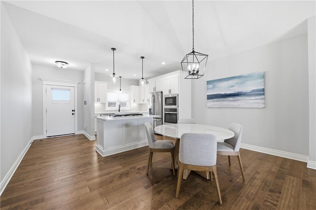 Maintenance provided living at it's BEST! 2 Years young! Inviting, covered front porch. Happy and bright interior! Wide plank, honey-toned, textured Hardwood Floors caress the main floor. Open kitchen featuring Arctic White Quartz counters and island with 5-burner gas range, downdraft hookup ready if desired,soft-close cabinets and drawers, SS appliances, open to dining and great room w/ gas fireplace, Covered Deck, and steps to the yard! Underground fence installed for your sweet pups, or install a fence! Rare options for maintenance provided properties! HUGE Primary Suite with Double Vanity, Ceramic tile shower, potty closet, large walk-in closet conveniently connected to the Laundry Room. 2nd Main Floor Bedroom and full bath! Lower level has media room/rec room and 3rd bedroom & Bath. Two storage largestorage rooms! ALL Stainless Steel Appliances stay and Washer/Dryer! Furniture negotiable! New hot water heater 2025! Vivint security system ready! STUNNING professional landscaping with River Rock beds Lawn care & snow removal included in low monthly HOA Fees of $125/ monthly ($1,500 annually)! Close proximity to shopping, restaurants, parks & recreation, and Smithville Lake! Great access to Hwy 169, 152, and 435! Get to the airport in less than 15 minutes!