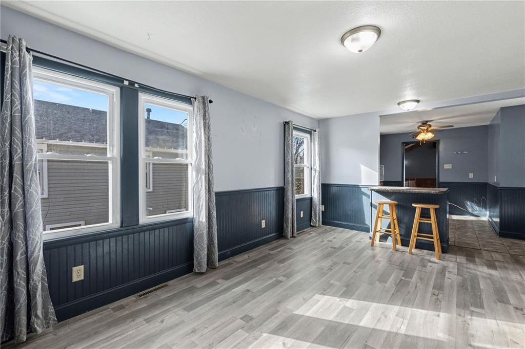 This charming Craftsman style home sits on a quiet street with the loveliest neighbors. One of the standout features of this home is the oversized living space added to the back — with vaulted ceilings and beautiful natural light, this area is incredibly spacious and makes the perfect living/dining combo or true hangout quarters of the house. Both main-level bedrooms feature brand new carpet and are separated by a full bathroom, offering a great layout and privacy. Laundry has been thoughtfully moved to the main level for easy one-level living, but can easily be converted back to a traditional closet with laundry returned to the basement if preferred. LVP flooring has been added throughout the living room and great room, giving the home a fresh, updated feel. Step out front and enjoy the covered porch — just add a couple of chairs and you have the perfect spot to relax, rain or shine. Out back, you’ll love the privacy-fenced yard and oversized covered deck. This home also offers a non-conforming bedroom in the basement with a workshop area, built-in storage cabinets, and a utility sink. The detached garage offers more than just parking — it’s perfect for a workshop, hobbies, or extra storage, and the home also provides plenty of off-street parking.