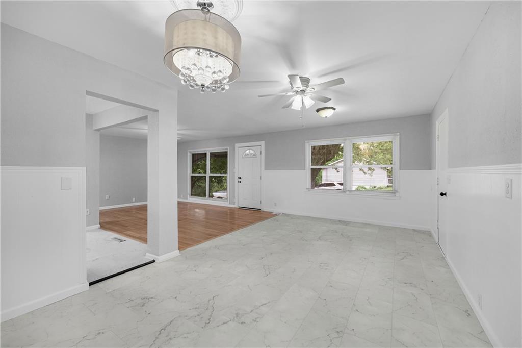 Welcome home to this stunning 3 bedroom, 2 bath ranch perfectly positioned on a desirable corner lot. Completely remodeled from top to bottom, this home offers the fresh feel of new construction with the charm of a classic ranch design. Step inside to an open, airy layout filled with natural light and gorgeous wood and vinyl flooring throughout - no carpet, no compromises. The show stopping kitchen is the heart of the home, featuring sleek countertops, stainless steel appliances, and modern cabinetry that flows seamlessly into the living and dining spaces, making it perfect for both everyday living and effortless entertaining. Both bathrooms have been fully updated with stylish, on trend finishes, and each bedroom offers comfortable space, great light, and a welcoming feel. A newer roof and fresh exterior updates add major curb appeal and peace of mind, while the full unfinished basement provides endless potential - extra living space, a home gym, media room, or abundant storage. With all the work already done, all that's left to do is move in and enjoy. Ideally located near shopping, dining, schools, and major highways, this home blends comfort, style, and convenience in one beautiful package.