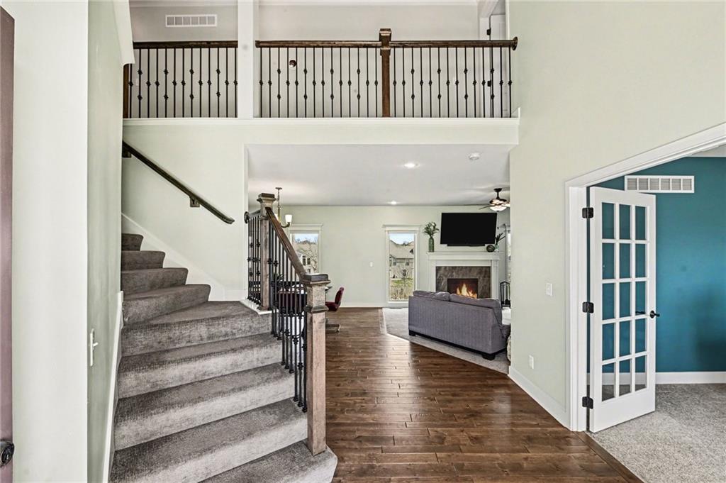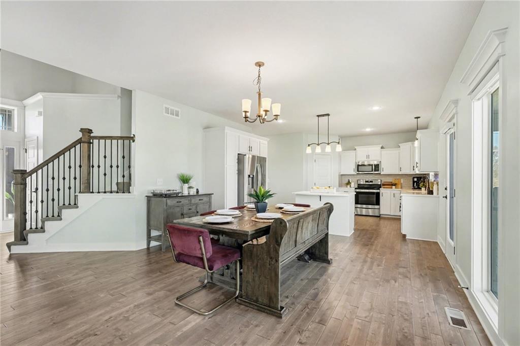 4 bedroom, 2.5 bath Logan Plan by Hoffman Custom Homes in the highly desired Waterford Subdivision within the Staley High School District! This wide-open two-story backs to green space and is filled with natural light. The main level features a spacious kitchen with a large island, granite countertops, walk-in pantry, wide-planked wood floors, and a bright, separate office. Upstairs offers bedroom-level laundry and 4 spacious bedrooms, two with large walk-in closets. The basement is prepped for finishing with electrical completed, insulation installed, abundant windows, and a walk-out to the flat backyard that opens directly to green space. Exterior features include a covered deck, lower patio, level yard, and a large 3-lane driveway with an installed basketball hoop. The neighborhood also offers a community pool for added recreation. A fantastic opportunity to own a better than new Logan plan with high energy package with 95% high efficiency HVAC, Gerken thermopane windows and R-49 insulation in the attic!
