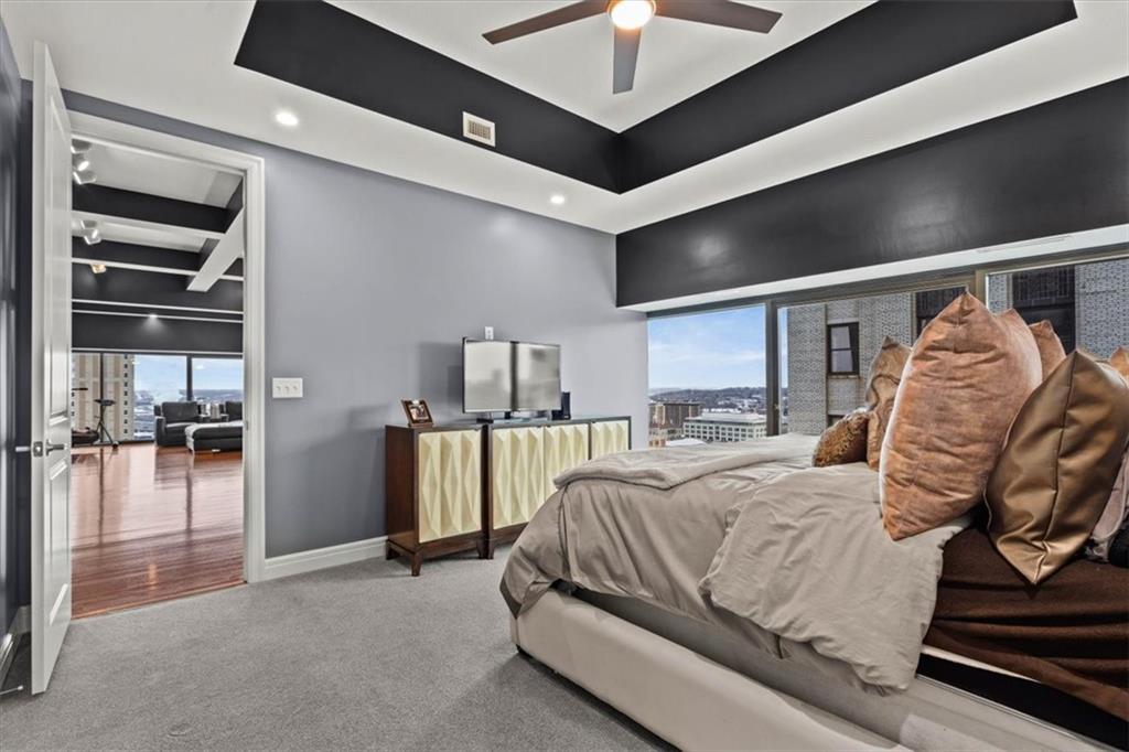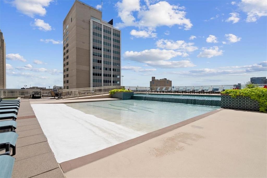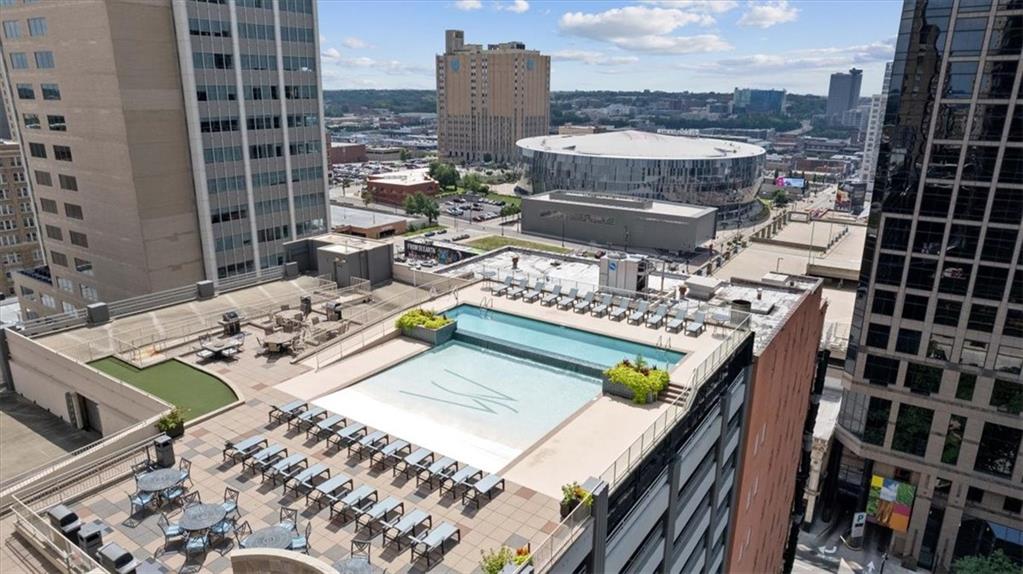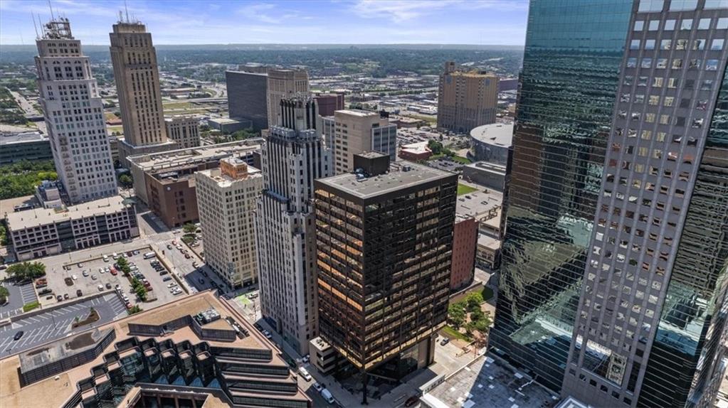 3 MONTHS OF HOA PAID+$2K YOUR WAY with an acceptable offer. Located in the Financial District, Wallstreet Tower offers advantages that matter:full-service amenities, a valuable tax abatement, and the ability to step outside into a dynamic, walkable neighborhood. Dining, culture, and nightlife aren’t destinations here; they’re part of your daily routine. This 19th-floor residence delivers a sleek, sophisticated take on downtown living. Set high above the city, the noise fades, the light shifts with the day, and captivating corner views become a defining element of the design. It all begins with a beautifully presented kitchen featuring a substantial island, perfect for morning espresso to evening cocktails and entertaining. Stainless steel appliances, custom cabinetry, and a thoughtful layout create a cohesive atmosphere that encourages gathering, conversation, and inspired cooking. From there, the living area unfolds, where bold color and abundant natural light create an open-gallery aesthetic. Glass walls, coffered ceilings, strategic lighting, and architectural lines add visual intrigue. As a gas fireplace and rich hardwood floors bring warmth & understated elegance. By night, the primary suite transforms into a serene retreat. A spacious walk-in closet keeps stuff organized, while the en-suite features dual vanities, a walk-in shower, & a Jacuzzi tub to soak away the stress. The secondary bedroom & ensuite are equally inviting, with a slightly smaller footprint. Perks include a stylish guest bath, in-unit W/D, 2 garage parking spaces, & extra storage. Amenities cater to your every need:a staffed lobby w/round-the-clock security, a gym, media room, lounge, theater, and communal kitchen. The rooftop pool & sundeck await, along with BBQ grills, a putting green, & panoramic sunsets that never get old. Turn the everyday into something extraordinary in a high-rise condo that elevates your perspective and transforms how you experience life in Kansas City.