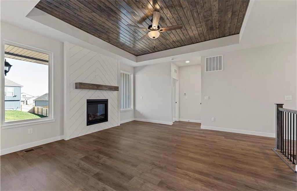 MOVE IN READY, MAY 2026. Welcome to The Kinley in Woodhaven! This spacious 3-bedroom, 2-bath ranch sits on one of the community’s premium lots, backing to beautiful greenspace and walking trails. Enjoy added privacy from your covered deck—perfect for relaxing or entertaining. The open-concept kitchen features quartz countertops, a large center island, walk-in pantry, and luxury vinyl plank flooring that flows throughout most of the main living areas. Bedrooms offer comfortable carpeting, creating a warm and inviting retreat. This home truly has it all with thoughtful design and quality finishes throughout. Woodhaven is one of the fastest-growing communities in Platte County, offering incredible future amenities including a pool, play area, walking trails, covered pavilion, and pickleball courts.