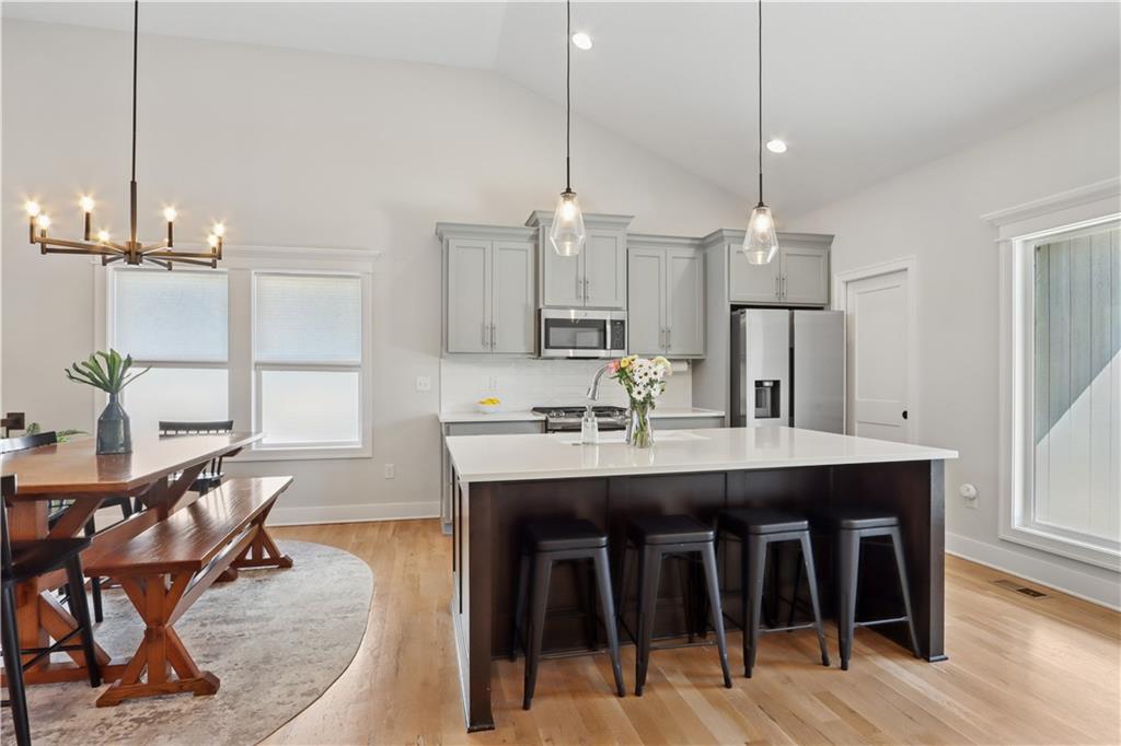 Life feels easier in this beautifully maintained, 4-year-old home nestled in the sought-after Estates of Timber Springs in Shawnee. Meticulously cared for, this residence blends modern style with everyday functionality. Inside, you’ll find hardwood floors, a stunning stone fireplace that anchors the living space, and a thoughtfully designed layout perfect for both relaxing and entertaining. The kitchen offers a generous pantry for storage, while a dedicated laundry room adds convenience to daily living. The spacious primary suite serves as a private retreat, complete with double vanity sinks and a well-appointed bath. Step outside to enjoy the patio and backyard, ideal for gatherings or quiet evenings at home. Additional highlights include a three-car garage, extra storage room in the basement, 4-year-old roof and HVAC system, and a radon mitigation system already in place for added peace of mind. Located in a walkable neighborhood close to parks, schools, and Lake Quivira Country Club, this home truly checks every box for comfort, quality, and location.