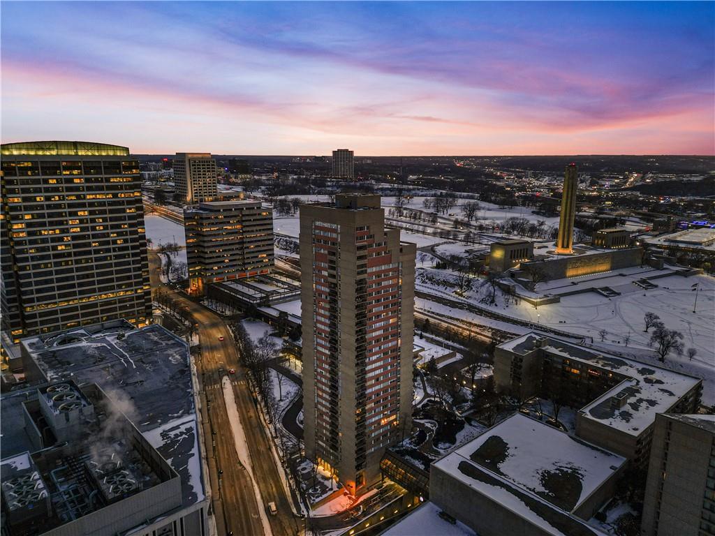 Welcome home to San Francisco Tower, one of Kansas City’s most iconic full-service high-rises, where a 24/7 doorman & concierge service, resort-style amenities, & breathtaking skyline views create an elevated lifestyle. Recently updated, this condo features an airy open-concept layout w/heated floors & a designer kitchen that anchors the space with sleek modern cabinetry, premium finishes, & a polished, contemporary look, ideal for everyday living and effortless entertaining. Step onto your private south-facing balcony to take in incredible views of Liberty Memorial, the KC skyline, & the lush 1.5-acre private gardens below. It is the perfect front-row seat for concerts, fireworks, & even the magic of Christmas lights, & the rooftop offers another unforgettable place to enjoy the view. Located in the heart of Crown Center, this is a rare opportunity for true urban convenience w/underground walkability to Halls, Crown Center, Union Station, & 17+ restaurants, making this a one-of-a-kind gem for anyone who wants effortless access to dining, shopping, & Kansas City’s favorite seasonal events & holiday festivities. The opportunities are endless w/continued momentum around a potential downtown Royals stadium district, plus quick access to the downtown airport, major highways, & MCI, & less than 20 minutes to Arrowhead & Kauffman for game days. With Kansas City selected as a FIFA World Cup 26 host city, you will be right where the energy is, w/matchday excitement, visitors, & fan experiences centered around the urban core and a short trip to the stadium for games. The monthly HOA covers trash, water, building maintenance, lawn maintenance, management, property insurance, roof repair, snow removal, & trash pickup, with the exception of electricity. Amenities include an Olympic-sized saltwater pool, tennis & pickleball courts, a fitness center, four entertainment lounges, & beautifully landscaped private gardens. Gated, secured parking is available through leased spaces.