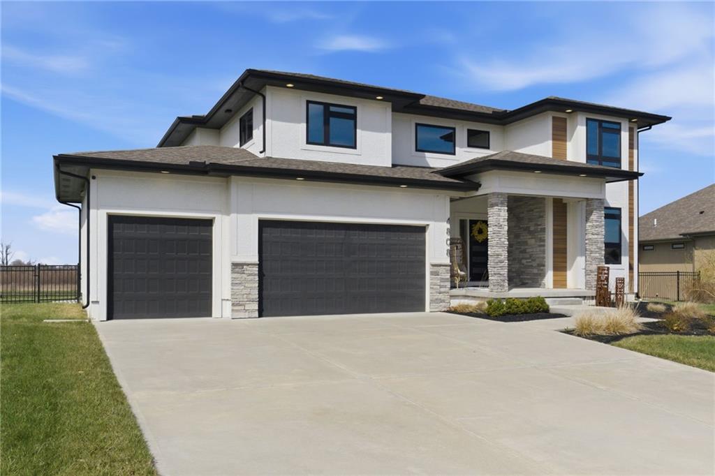 This beautiful nearly new 2 story has it ALL! Immaculate and stylish with high end finishes and GORGEOUS inside and out! The home is loaded with upgrades! You'll love the soaring high ceilings as you step into the Great Room with custom lighting, tons of natural light from oversized windows, and a unique floor to ceiling fireplace with built ins. Quality hardwood flooring runs throughout the main level. The fully equipped kitchen boasts bright white quartz countertops, rich, dark custom cabinetry, indirect lighting, and high end appliances, including a gas cooktop. The kitchen island is massive with plenty of room for entertaining. The kitchen also has a large walk in pantry, as well as a convenient second pantry closet. The upper level has 3 bedrooms, including the stylish primary bedroom with onsuite bath, offering all of the comforts you would expect. The lower level provides plenty of additional living space including a spacious family room with wet bar, game room, the fourth bedroom, and full bath. Additionally there is a generous unfinished storage area. Step out of the large, oversized sliding glass doors in the Great Room and enjoy the peaceful and secluded outdoor space of this home, featuring a huge 20 X 10 covered deck, along with a retractable awning to offer even more shade and comfort. Relax in the 6 person hot tub, which stays with the home. You’ll love the view of the scenic oversized pond just beyond the backyard, complete with walking trails as well as fishing. Monticello is a beautiful newer single family community in Lee's Summit with trails, a pool, and ponds near Fleming Park. Enjoy all the services and amenities this neighborhood has to offer.