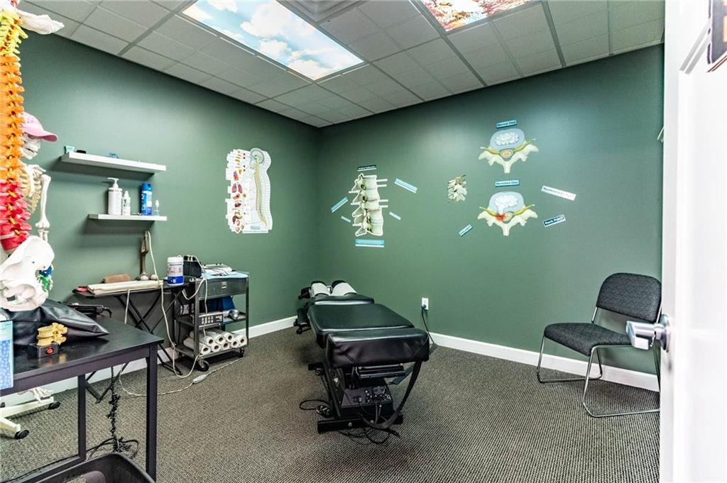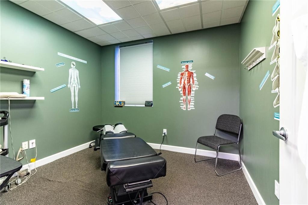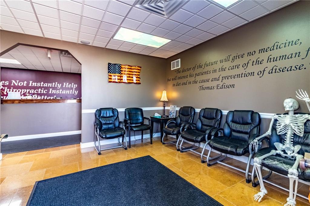 Excellent Opportunity to own a spacious, 3600 sq ft, well maintained, commercial building located in a high traffic area. This property is currently being used as a successful, thriving, chiropractic clinic and there is the option to purchase the business and assets in addition to the building. Clinic offers 7 treatment rooms, 2 offices, 3 restrooms, kitchen, laundry, conference room, 2 storage rooms, 2 reception areas and a waiting room. One of the bathrooms includes a shower and is a private bathroom located off an office. This property is zoned general business so its suitable for office space, restaurant, retail, or other service-based business... options are endless. Features ample parking/detached 1 car garage could be used for additional storage/3 HVAC units/High-end siding/Beautiful Signage/ This building is set up in a way that the back portion could be rented out for additional income or expand the existing practice.