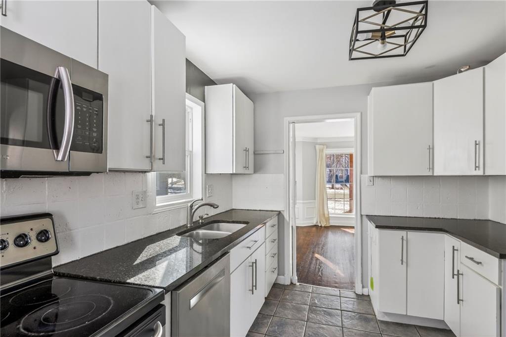 This charming 2-story home built in 1940 exudes character, blending historic details with thoughtful modern updates. The inviting, picturesque front porch welcomes you into a spacious family room filled with natural light, featuring a wood-burning fireplace, built-in bookshelves, and access to an enclosed side porch. A large formal dining room offers the perfect setting for gatherings, while the updated kitchen impresses with granite countertops, stainless steel appliances, soft-close cabinets and drawers, and a pantry. A cozy eat-in breakfast nook with built-ins adds even more charm. Gorgeous hardwood flooring, textured ceilings, and updated light fixtures run throughout. The primary bedroom features double closets, a full bath, and access to the roof deck. Secondary bedrooms are generous in size with ample closet space. The finished lower level offers a fun, spacious rec room complete with a wet bar and built-ins—ideal for entertaining or relaxing. Enjoy outdoor living in the manicured, fenced backyard with a patio and stone paver walkway. The expanded 2-car garage provides extra space, plus there’s an extra-wide private driveway. Major updates include roof, furnace, hot water heater, Hardie Board siding, Andersen thermal windows, and more. Prime location with convenient access to The Country Club Plaza, Brookside, and all the amenities you love. Don’t miss this one—it’s full of charm, space, and style!