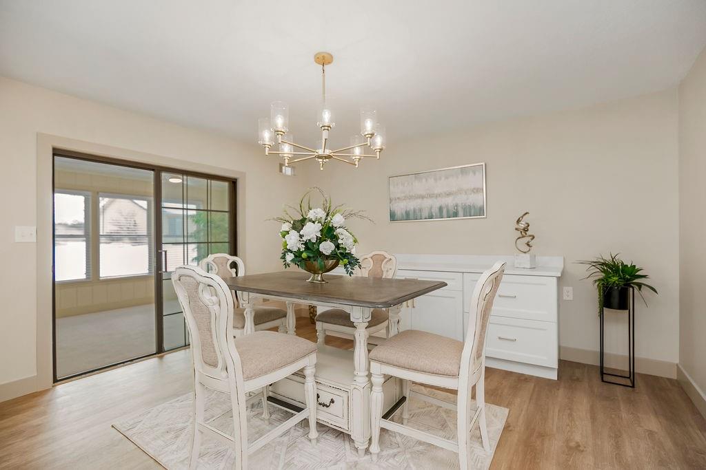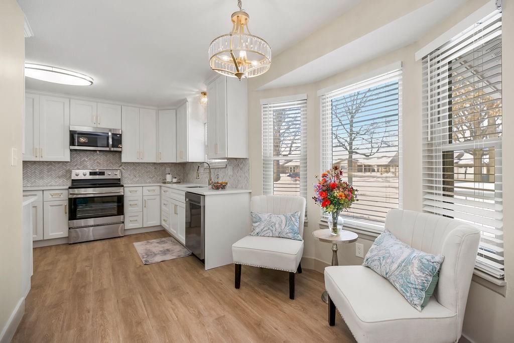 Newly remodeled garden home in sought-after Foxwood Springs 55+ community! This 2BR/2BA home offers 1,891 SF with office, four-season sunroom, and 1-car garage. Completely updated with new kitchen cabinets, marble tile backsplash, quartz countertops, stainless appliances, new LVP flooring and carpet w/ 8-lb pad. Features include new lighting and added can lights, 2-panel interior doors, brushed-gold hardware, 5" base trim, faux-wood blinds, built-in dining buffet, updated baths with quartz vanities and glass shower doors, fresh interior paint, textured ceilings (popcorn removed), new landscaping, and exterior door. HVAC, windows, humidifier, and hot water heater less than 5 years old. Move-in ready! Enjoy maintenance-provided living with HOA services that include 24-hour security, emergency response, lawn care, snow removal, trash, exterior and interior maintenance, and utilities (water/sewer). A one-time $3,000 access fee provides use of community amenities including indoor pool, fitness center, library, lounges, meeting rooms, billiards, shuffleboard, garden plots, greenhouse, picnic area, and on-site dining, with optional housekeeping and transportation services. Experience the perfect blend of independence and community—truly a wonderful place to call home.