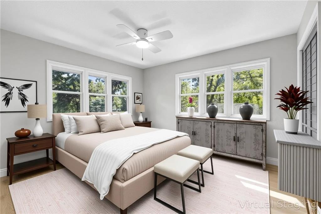 Complete renovated Reverse 1.5 Story offering main level living, spa-like primary suite, and finished walk-out basement on nearly half an acre! If you have viewed this one before, STAY!! Seller took property off market & completed enhancements you will love!! This home also offers main level living with 3 bedrooms and 3 full bathrooms on the MAIN FLOOR—a RARE find. The redesigned primary suite includes a spa-like bathroom, double vanity, LED backlit mirror, walk-in tiled shower, freestanding soaking tub, custom built-ins, and a large walk-in closet. Additionally seller replace LVP flooring on the main level with hybrid wood flooring, and new carpet in bedrooms. The fully remodeled kitchen features new cabinetry, quartz countertops, large island w/cooktop, double oven, pantry, abundance of counter space especially for entertaining! Open concept living room/hearth room with fireplace, abundant natural light, and modern finishes throughout. All new interior doors, trim, hardware, lighting, and ceiling fans. Finished walk-out basement expands living space large rec room, wet bar, second fireplace, additional bedroom, full bathroom, & walk-in laundry room with built-ins. Unique hidden room behind built-in bookcase adds flexible bonus space! Exterior features - covered patio, new deck, nearly ½ acre lot, and partial privacy fence. Major updates: new roof, new garage door, new driveway, fresh interior & exterior paint. This beautiful modern home is Turnkey/ Move-in ready. Prime location w/quick highway access, aprox 15 minutes to downtown, 30 mins to KCI Airport, 20 minutes to Chiefs/Royals Stadium. Close to OP shopping & dining. Shawnee Mission School District. HIGHLIGHTS INCLUDE- Complete Interior Renovation- Turnkey Ready- Reverse 1.5 Story- Main Level w/3 Bedrooms & 3 Full Bathrooms- Primary En-Suite- Finished Walk-Out Basement, Wet Bar- New Garage Door, Driveway, Partial Fence- New Roof- Great Location-Easy Commute!