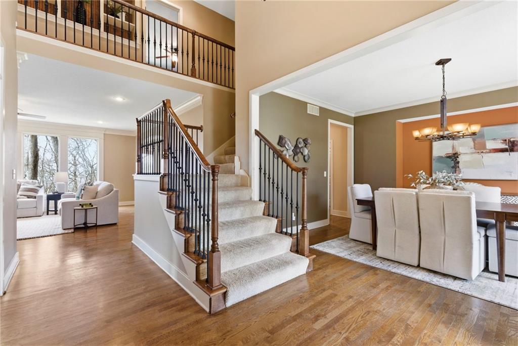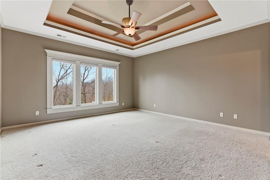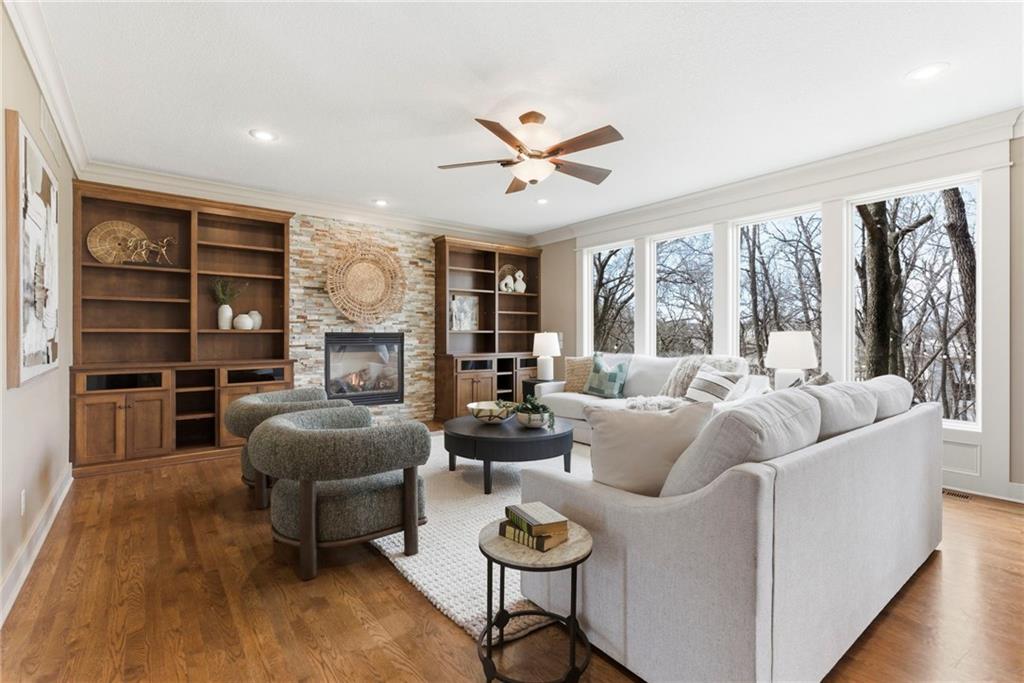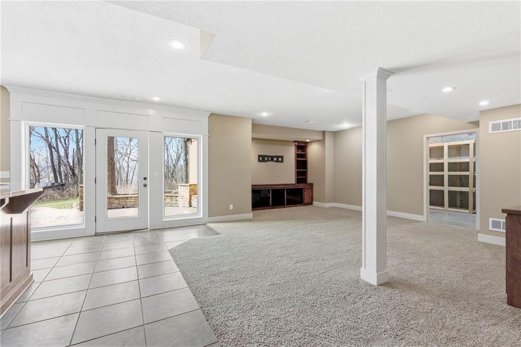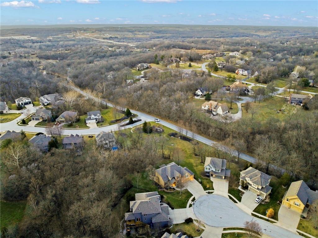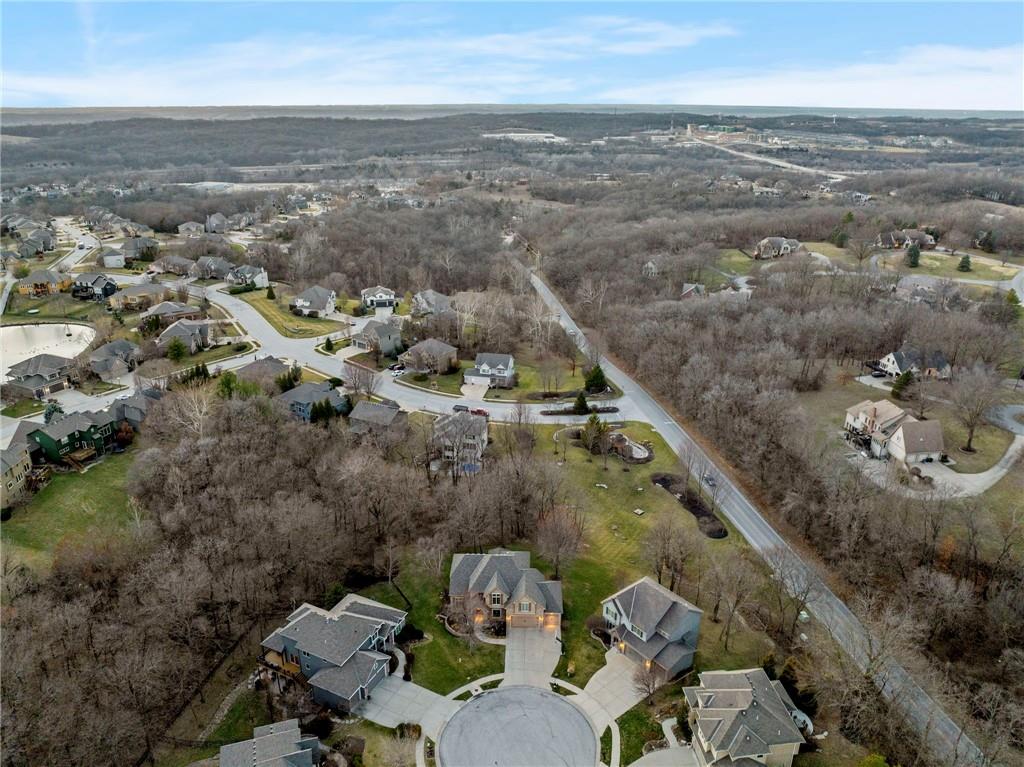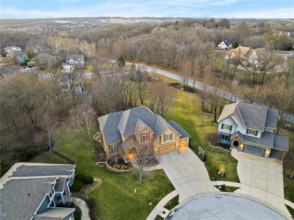 Welcome to this stunning former model home in the sought-after Thousand Oaks subdivision. Crafted by Shawn Land Builders & meticulously maintained by the original owners for nearly 20 years, this refined 4-bedroom, 4.5-bath residence offers just under 4300 sq. ft. of brilliantly designed space. Its oversized lot at the end of a cul-de-sac backs to protected green space, with mature trees surrounding the backyard to provide privacy and a serene setting. From the grand two-story foyer to the expansive lower level primed for entertaining, every detail reflects exceptional living. Highlights include a stylish office, a formal dining room, and a gorgeous living room complemented by a gas fireplace with a stone facade, built-ins, and picturesque windows framing serene views. The kitchen is beautifully appointed with a substantial island, granite countertops, custom cabinetry, GE appliances, a walk-in pantry, & a bright breakfast room. Just beyond, a covered deck becomes an inviting spot for coffee or to unwind with dinner and drinks. Upstairs, the primary suite impresses with double-tray ceilings, a spa-like bath with a jetted tub & shower, & a giant walk-in closet. One secondary bedroom has a private ensuite, while the other two share a Jack-and-Jill bath. Downstairs is an entertainer’s dream, featuring a full wet bar with beverage cooler and fridge hookup, microwave, dishwasher, a huge recreational area, 2 bonus rooms, full bath & storage. Outside, a sensational stone patio, bench, and wood-burning fire pit await quiet evenings under the stars. A 3-car garage has an organization system and a utility sink. Plus, a brand-new roof & 1-year Home Warranty adds peace of mind. Neighborhood amenities encompass scenic lakes, trails, pools, clubhouse, playgrounds, tennis courts, a swim team & social events. With luxury, comfort, and a prime location near Parkville’s shops, dining, entertainment, and top-rated Park Hill schools, this designer home has it all!