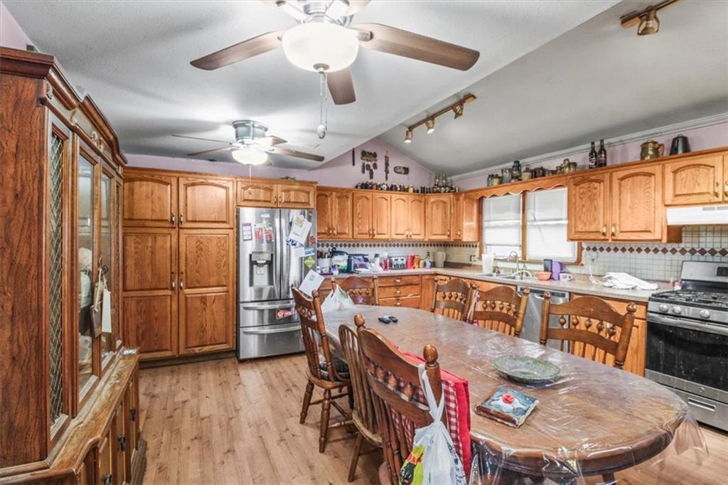 Enjoy the best of country living on 8.75 acres just minutes from the city! Located off F Highway in unincorporated Jackson County, this property offers privacy, flexibility, and tons of potential. The home features a spacious eat-in kitchen with abundant cabinetry and all appliances staying, plus room for formal dining. The bright living room opens to a charming sunroom, perfect for natural light and plants and includes a walk in soaker tub. The main level includes two large bedrooms and a generously sized bathroom. Upstairs offers space to create two additional rooms. Outside, you’ll find a detached garage already set up with separate living quarters, including a kitchen area and full bath... ideal for guests or rental potential. The commercial-grade walk-in freezer stays! Enjoy the large upper deck, charming old barn, additional outbuilding, home generator, and even a horseshoe area for entertaining. Just needs your vision!