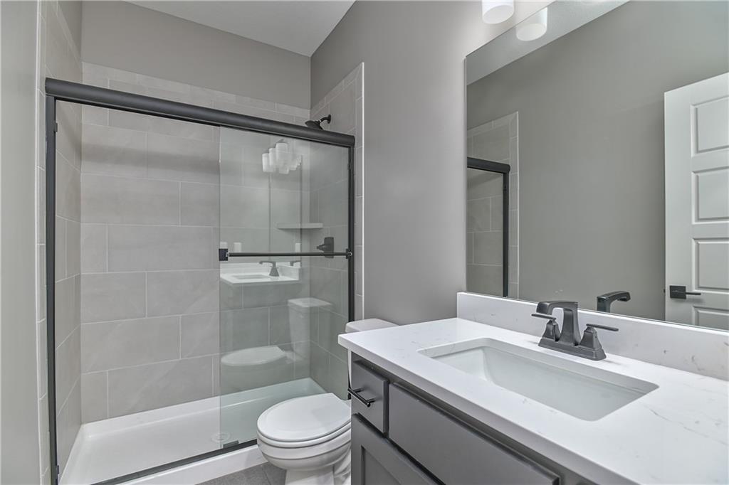 The popular Rose by Stone Creek Custom Homes has a new look in this Rose 2.0 on a large lot!! All of the great features of the original Rose with a new front face. Soaring Ceilings in the great room, stone fireplace, hardwood floors and lots of natural light. The kitchen has a HUGE island, tons of cabinet and counter space with soft close doors/drawers, gas range, and wall oven. The pantry is expansive with ample storage and counter space for small appliances. The primary bedroom on main floor is spacious with beautiful ensuite bathroom and closet conveniently located next to laundry room. This home is on a daylight lot and has a covered composite deck with stairs. Upgraded 50 year hail resistant roof and 4' metal fence included!! Estimated completion is spring 2026 - call listing agent with questions. Some pictures of previously completed home of same plan.