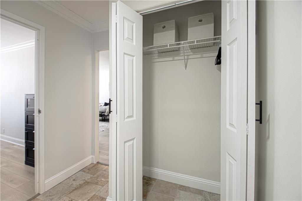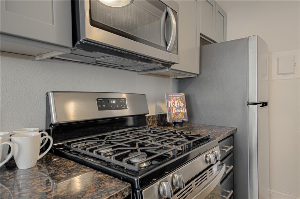 DONT MISS THIS! Welcome to this updated 1-bedroom, 1-bathroom condo at the Manhattan Condominium. This clean, move-in-ready unit features thoughtful updates that make it comfortable and appealing. Inside you'll find fresh LVP flooring throughout the unit, complemented by new crown molding, updated light fixtures, and new custom blinds. The real star of this home is the luxurious, spa-like bathroom with a stunning walk-in shower featuring beautiful tile work, modern fixtures, and a rain showerhead—a true retreat! The kitchen has been refreshed with new upper cabinets and includes a new refrigerator and microwave. The primary bedroom features a convenient laundry closet with a Bosch washer and dryer—no shared laundry facilities! Unit is being sold partially furnished, including a bed, dresser, futon in the living room, dining table with 4 chairs, kitchen utensils and cookware, living room TV and stand—perfect for those looking for a turnkey living situation or investment property! This well-maintained condo offers clean, comfortable living with some great updates where it counts. Perfect for anyone looking for a simple, functional space with one truly beautiful feature! Manhattan Condominium offers resort-style living with incredible amenities: a penthouse indoor pool, movie theatre, expansive gym with YouTubeTV, WiFi throughout the building, entertainment and grilling areas, elegant lobby, beautician and coffee shop on-site, and 24-hour maintenance services. There's a dog park nearby for your furry friends! Embrace hassle-free living with utilities, trash, and recycling included in HOA fees. Enjoy the security and convenience of a private garage with an assigned parking spot and additional storage unit. Long-term leasing is allowed, making this an excellent opportunity for investors or buyers seeking rental income potential.