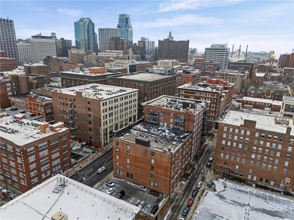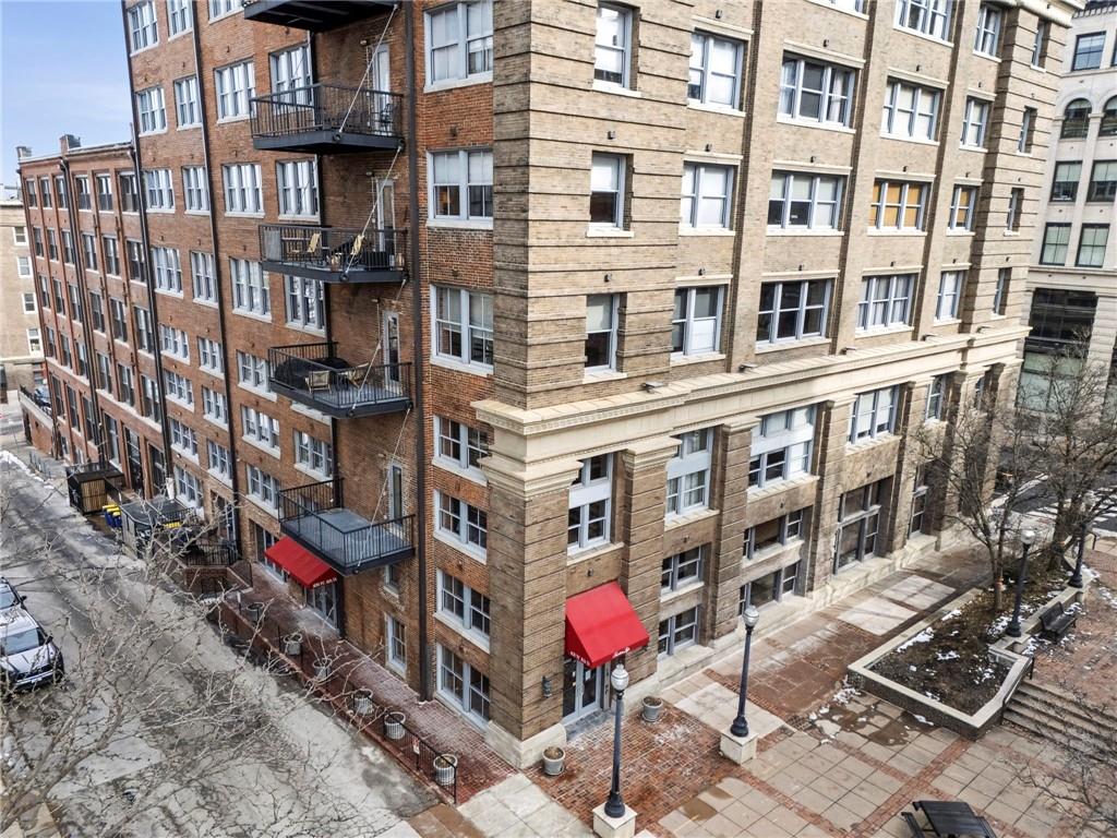 Live at the intersection of history, flexibility, and city life in this light-filled corner loft at Fountains on Broadway. Located in the heart of Kansas City’s Historic Garment District, this 2-bedroom, 2-bath residence offers classic warehouse character paired with a layout designed for modern living. Exposed brick walls, heavy timber beams, polished concrete floors, and soaring ceilings create an authentic loft atmosphere, while expansive east-facing windows fill the spaces with natural light throughout the day. Renovated in 2017, the open layout flows seamlessly into a versatile bonus space—perfect for a home office, dining area, den, or creative studio rarely found in comparable lofts. Both bedrooms are fully enclosed to the ceiling, providing enhanced privacy while preserving the authentic loft aesthetic. The kitchen is designed for everyday living and entertaining, featuring granite countertops, a gas range, and ample cabinetry. HOA dues include water, sewer, trash, gas, and building insurance—leaving electricity as the primary utility expense. Parking options are available on the street and for lease in nearby garages. All appliances, including the in-unit washer and dryer convey—making this home ready for immediate occupancy! Life at the Fountains on Broadway extends well beyond your front door. Residents enjoy a boutique 45-unit community with secure access, two elevators, fitness center, theater room, clubhouse with full kitchen, and a welcoming courtyard ideal for gathering. Step outside and you’re moments from the River Market, local restaurants, shops, and dog parks with the streetcar nearby offering easy access to downtown, Crossroads, Union Station, and beyond. Highway access is quick and effortless just a couple blocks away, connecting you to the entire metro. Whether you’re working from home, entertaining friends, or exploring the city, this home delivers the true work-live-play lifestyle that downtown Kansas City is known for.