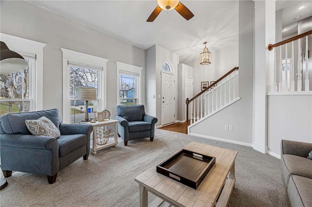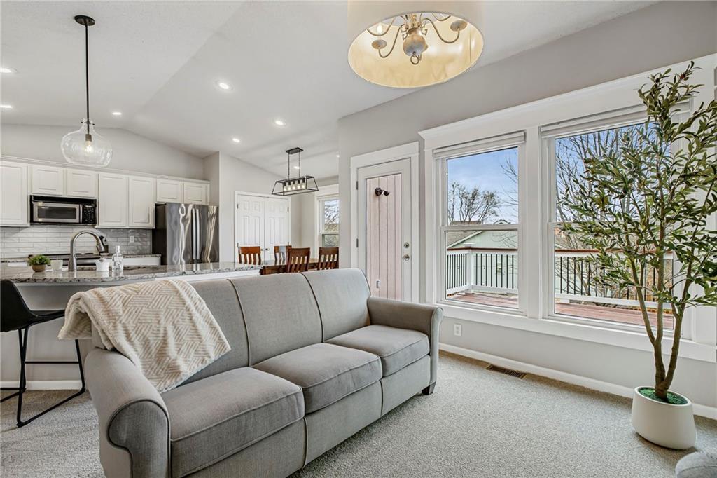 This stunning 3-bedroom, 2.5-bath split-level home is truly move-in ready and shows like new. Thoughtfully updated, it blends modern finishes with functional living spaces—inside and out. The heart of the home is the fully updated kitchen, featuring granite countertops and sink, double ovens, pendant lighting, and updated dinette lighting—perfect for everyday living and entertaining. Throughout the home, you’ll find craftsman-style window trim, added windows that flood the space with natural light, and tasteful details such as shiplap accents in the hearth room/dining area. The fireplace is a showstopper, wrapped in stone all the way to the ceiling. Brand-new carpet (2026) adds a fresh, comfortable feel throughout the main living spaces. The finished basement offers exceptional versatility, featuring a wet bar complete with a beer tap tower and refrigerator, a convenient half bath, surround sound wiring, and a dedicated office or bonus space. Outdoor living is just as impressive. Enjoy two distinct outdoor spaces, including a covered patio with lighting and a newly stained deck and fence. The landscaped yard includes a full sprinkler system and an in-ground basketball goal, making it perfect for both relaxation and play. Major updates provide peace of mind, including new energy-efficient windows with transferable warranty (2023), enlarged 70-gallon hot water heater (2023), lifted driveway with transferable warranty (2023), a roof replacement with updated venting (2015), and updated bathrooms—including a refreshed kids’ bath with added window and new tile in the primary bath. Fresh exterior paint (2018) and numerous smart WiFi switches throughout the home add both curb appeal and modern convenience. This home is a rare find—beautifully maintained and ready for its next owner to enjoy.