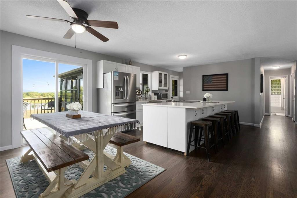 One of a kind property located at the end of a dead end road! This is a rare opportunity to own a picturesque fenced in 20 acre farm with a huge fully stocked 4 1/2 acre pond/lake. The home on the property is a fully renovated 4 bedroom 1.5 bath ranch with a 2 car garage and a full unfinished walkout basement(great for adding more living space, bathroom and bedrooms). The home has a modern open floorplan, updated eat in kitchen with huge quartz island and stainless steel appliances, newer HVAC, newer septic tank, updated electrical, refinished hardwood floors throughout, walk out to your back deck or covered screened in porch overlooking nearly the entire fenced in 20 acres as well as the entire pond! Good sized 6-8 stall barn, large 2 garage door Morton building for all of your toys! Additional pastures located on the southwest corner of the property for small livestock. The pond could be great for duck hunting as it sees a good amount of water fowl throughout the year. The view at this property is good enough that it could also be great for events like weddings etc. 10 minutes from downtown Belton, 10 minutes east of Louisburg and just down the road from the town of Cleveland Missouri, this property is conveniently located in the country but with all of the amenities you need! The property has been used as a short term rental since October 1st and has had great results! It has earned the Guest Favorite designation and has had all 5 STAR reviews since it was launched. As the seasons change we anticipate bookings to ramp up quite a bit going into the spring and summer months! With the upcoming World Cup being hosted in Kansas City the property will have a very HIGH earning potential this summer during the months of June and July. For a small additional cost the Seller is willing to sell the home FULLY FURNISHED with short term rental management in place so you can take advantage of the possible high dollar bookings this summer during the World Cup!