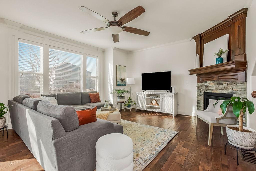 Immaculately maintained 4-bedroom, 3.5-bath home only 10 years old and truly shows like new! Fresh interior and exterior paint completed within the last few years adds to the crisp, move-in-ready appeal. The open floor plan features gorgeous hardwood floors throughout the main level and offers both a formal living room or flexible space, plus a spacious family room with fireplace that flows seamlessly into the dining area and kitchen—perfect for everyday living and entertaining. The well-designed kitchen includes a large walk-in pantry, gas range and newer dishwasher and microwave (within the last 4 years). A convenient drop zone just inside the garage entry adds everyday functionality. Major updates include a new A/C condenser and sump pump in 2025. The basement includes an egress window and offers an incredible amount of storage or the perfect opportunity for future finishing. Outside, enjoy beautifully landscaped grounds with low-maintenance perennials, a fully fenced backyard, and an in-ground sprinkler system. This home has been lovingly cared for and offers the ideal blend of style, comfort, and modern updates.