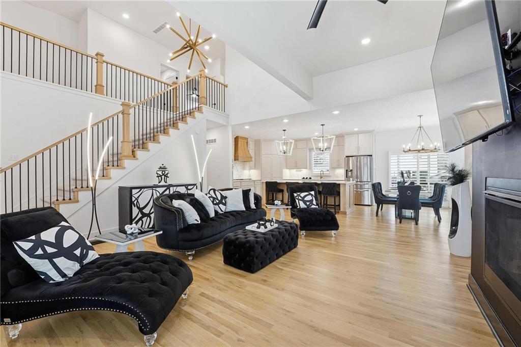 Discover this stunning open-plan 1.5-story home in Weatherby Lake, MO, just 4 years old and designed for modern, flexible living. This property features a full, separate living quarters ideal for multi-generational living, guests, or private workspace, including a bedroom, bathroom, walk-in closet, family room, dining area, recreational space, kitchen, and laundry. The main level offers true single-level living with a primary suite, dining area, great room, laundry, and office space. The gourmet kitchen is equipped with a large island, marble backsplash, double ovens, drawer microwave, and 5-burner gas cooktop, perfect for entertaining and everyday living. Upstairs, you’ll find three additional bedrooms and nearly 900 square feet of versatile living space, ideal for a kids’ hangout, workout room, media room, or home office. Exterior highlights include an epoxy-coated garage floor, expanded driveway, patio, privacy-fenced backyard, and additional shed storage—perfect for outdoor living and organization. Recent upgrades include a secondary living area in the lower level with an added egress window, enhancing light and functionality, plantation shutters, hardwood flooring on main level and more! All appliances stay for added value and convenience! Located in the sought-after Weatherby Lake community, residents enjoy lake life with boat access, leased and WLIC member docks, private beach, community center, tennis, pickleball and basketball courts, and multiple playgrounds. This home is served by Hawthorne Elementary, Congress Middle School, and Park Hill High School and offers unbeatable convenience—close to shopping, Kansas City International Airport (KCI), just 20 minutes from downtown Kansas City, MO, and 15 minutes from The Legends area in Kansas. Hard to find modern new home in Weatherby Lake, MO with lake access, flexible living space, and luxury upgrades, this property delivers lifestyle, location, and value.