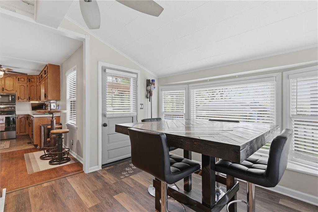 Some homes you walk into and immediately start making a list. What needs to be updated. What needs to be replaced. What you'd have to live with. This is not that house. From the moment you step through the front door the light hits you first. Real hardwood floors run beneath your feet. Windows pull the outside in from every angle. The layout breathes. Nothing feels forced. Nothing feels cramped. You move from the living room into the kitchen into the dining area without thinking about it because the flow just works. The sunroom style dining space stops people. Vaulted ceiling. Windows on every side. Natural light that changes throughout the day. This is the room you didn't know you needed until you're standing in it wondering how you'd ever leave. Out back the deck with pergola sits above a yard with mature trees and room to actually live. This is where mornings start with coffee and summers end with people who matter. The garage tells you who owned this home before you. Epoxy floors. Wall mounted storage. Organized down to the tools. Someone cared about this place. You can feel it in every room. The kitchen is move in ready. The bathroom is updated. The basement is clean and full of potential. The dedicated office space checks the box today's buyer needs checked. This home does not need your imagination to fix it. It just needs you to show up and live in it.