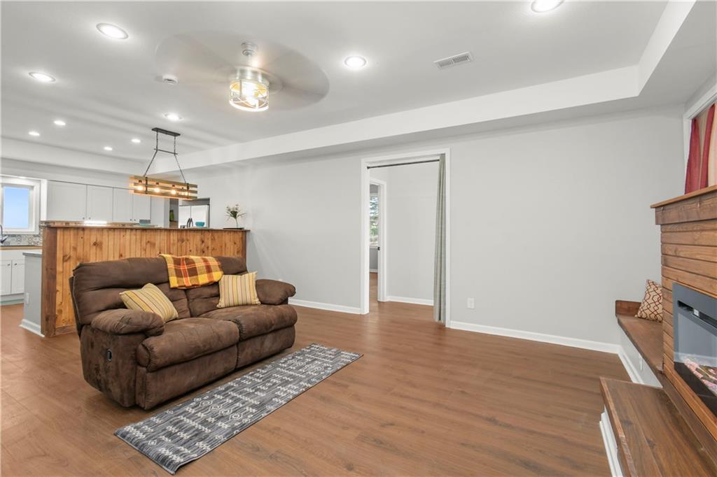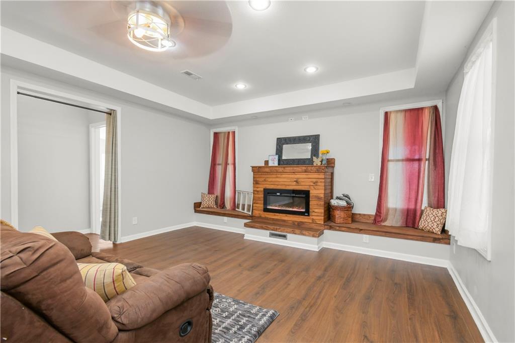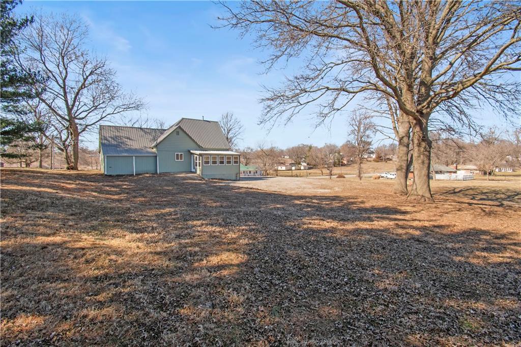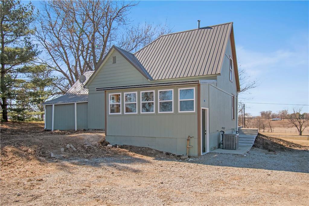Beautiful countryside home in Waverly, Missouri, set on just over one acre with generous spacing between neighbors and peaceful surroundings. This home was fully remodeled for the current owners, and a change in plans means their carefully finished home is now available. The exterior features brand-new siding, a durable metal roof, and a large front porch, part of which is covered, creating the perfect place to relax and enjoy the quiet setting. An enclosed sunroom at the front of the home offers additional living space filled with natural light and year-round usability. Inside, the home has been completely updated with fresh paint, vinyl plank flooring, restored hardwood floors, and tile throughout. The spacious living room offers high ceilings, recessed lighting, built-in storage, and an electric fireplace that creates a warm focal point. The kitchen features butcher block countertops, stainless steel appliances, and a built-in dishwasher. The main level includes a primary bedroom with a private ensuite bath and walk-in closet, along with a second main-level bedroom showcasing restored hardwood floors and a full bathroom just outside the room. An additional enclosed sunroom off the back of the home provides even more flexible living space and overlooks the backyard. The second level offers one large bedroom, a full bathroom, and a bonus area that would be perfect for a small office or gaming space, complete with a window and direct bathroom access. The backyard backs up to open farm ground and includes a storage shed, providing privacy and room to enjoy the outdoors. With 3 bedrooms and 3 full bathrooms total, this home combines space, updates, and a peaceful country setting that is increasingly hard to find. Sqft is estimated, buyer and buyer agent to verify.