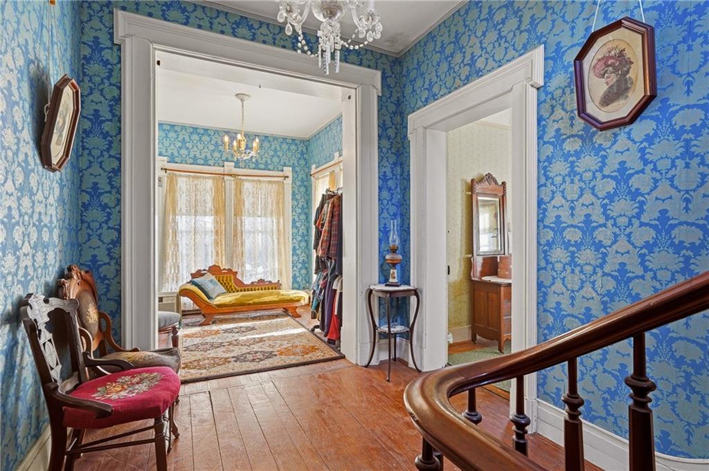 Step into a rare piece of Missouri history at 709 Herring Street, an extraordinary historic Victorian home set on 2.6 acres in the heart of Brunswick. Offering approximately 4,400 sq ft, this architectural treasure showcases original woodwork, intricate trim, soaring ceilings, and seven fireplaces, each a testament to timeless craftsmanship. The grand entry welcomes you with a dramatic spiraling staircase, richly patterned wallpapers, and period lighting. Formal living and dining rooms feature ornate mantels, bay windows, and exquisite millwork, while the updated kitchen thoughtfully blends modern convenience with historic character. A captivating third-story tower offers endless potential—studio, library, or retreat—while the expansive front porch invites quiet mornings and evening conversations beneath mature trees. The property also includes an original water tower and summer kitchen, adding rare historical significance. This is more than a home—it is a legacy awaiting its next steward. Ideal for those who value preservation, craftsmanship, and small-town charm on a large lot. See full Matterport Virtural Tour Here - https://my.matterport.com/show/?m=CxJiRMyLHcv&mls=1