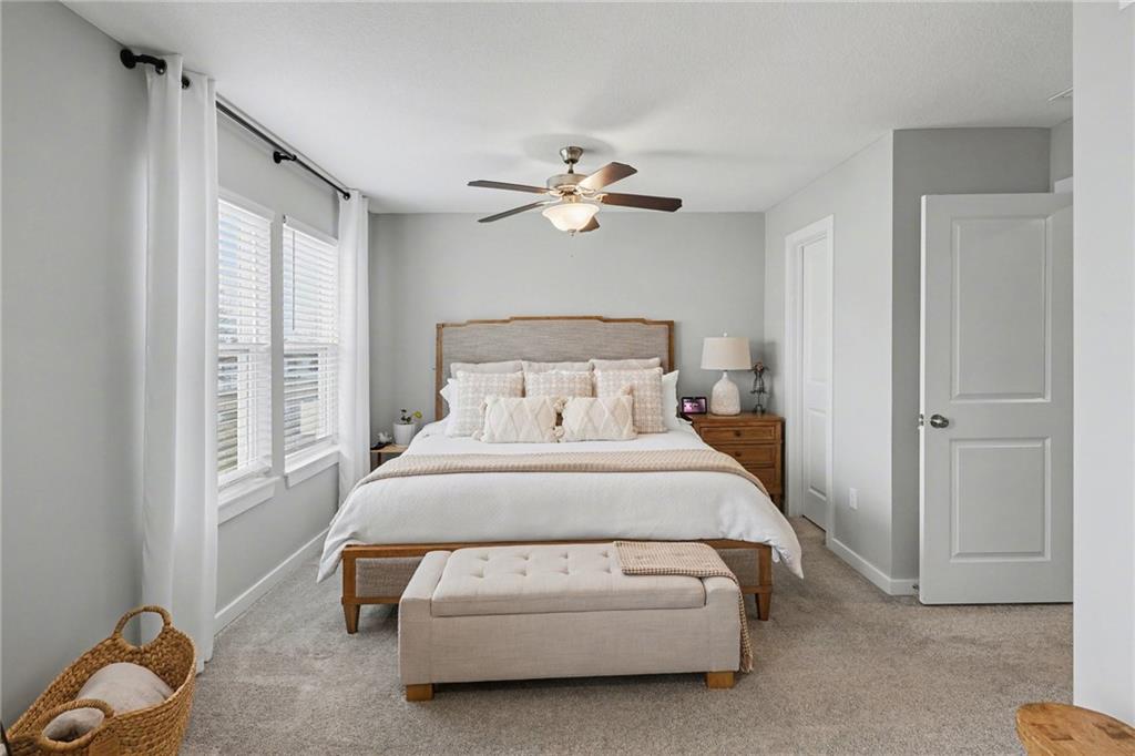 Well-appointed single unit within a four-plex, featuring excellent curb appeal. The inviting entry showcases an open foyer with iron spindle staircase accented by designer carpet. Luxury vinyl plank flooring spans the entire first floor. The thoughtfully designed kitchen offers stainless steel appliances and quartz countertops, seamlessly flowing into the breakfast nook and spacious great room—ideal for both everyday living and entertaining. The oversized owner’s suite includes a walk-in closet, while the conveniently located upstairs laundry serves all bedrooms. Secondary bedrooms feature generous closet space, complemented by a large upstairs bathroom. The unit also includes a full, unfinished basement, providing abundant storage or future living space potential.