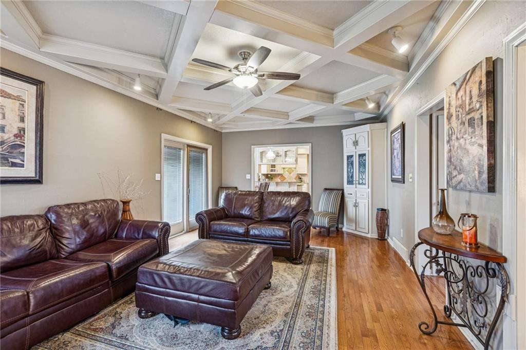 Step into exceptional scale and style with this impressive 4-bedroom two-story home that delivers space, character, and versatility at every turn. A striking grand entry sets the tone, welcoming you into formal living and dining spaces featuring hardwood floors, crown molding, large windows and an elegant, flowing layout. The main living room is a true showstopper with coffered ceiling detail, a beautiful stone fireplace, and wood floors opening to the kitchen with granite countertops, ample cabinetry, double ovens, a custom pantry and an eat-in area with a tray ceiling. An adjacent room provides flexibility for a formal dining area or home office. The oversized primary suite feels like a private retreat, complete with a sitting area and spacious en-suite bath offering double vanities, a soaking tub, and separate shower. Three additional bedrooms are located upstairs, while a finished room on the lower level offers the perfect space for a home office, exercise room or storage. The expansive walk-out lower level is an entertainer’s dream, featuring a second fireplace, large recreation area, and wet bar with plenty of room for a media space, game area, and lounge. Step outside to enjoy multiple outdoor living spaces, including a patio, elevated deck accessible from the main living area and kitchen, and covered gazebo overlooking the backyard perfect for outdoor living and summer evenings. Experience a home that combines generous square footage, timeless details, and flexible living spaces, ready to be enjoyed for years to come.