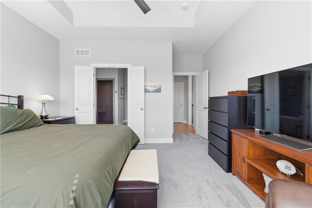 Enjoy the most gorgeous Kansas sunsets from your back deck at this beautiful and like new reverse ranch "Wheeler" plan, with so much natural light and space for everyone. Built just 3 years ago, this home welcomes you in, with a main floor office/guest suite, mudroom and laundry room, and oversized 3 car garage. Primary suite overlooks green space, complete with a massive ensuite providing a soaker tub, walk-in shower, and wonderful storage. Kitchen built to host, with spacious pantry, beautiful island, and dining space. The basement has barely been used - providing 2 bedrooms each with walk-in closets, a living space, and room for games. Upgrades throughout - and pride of ownership shows. Home sits across the street from award winning elementary school, and neighborhood provides such amenities like fitness center, sport courts, splash pad, park and pool! Totally turnkey with all the upgrades.