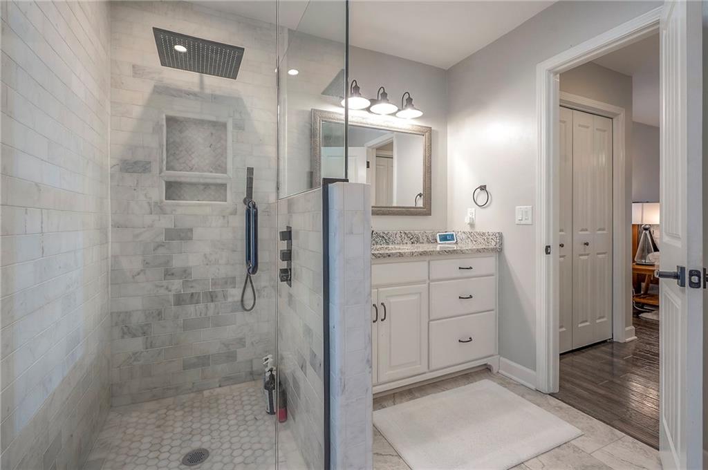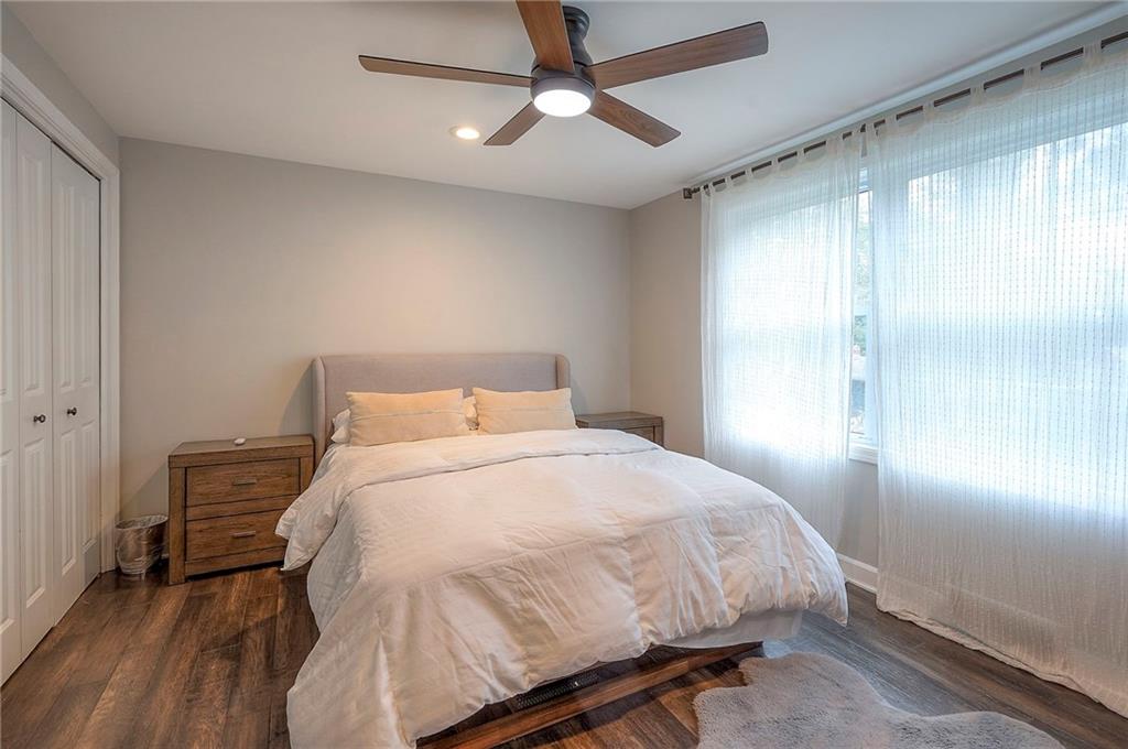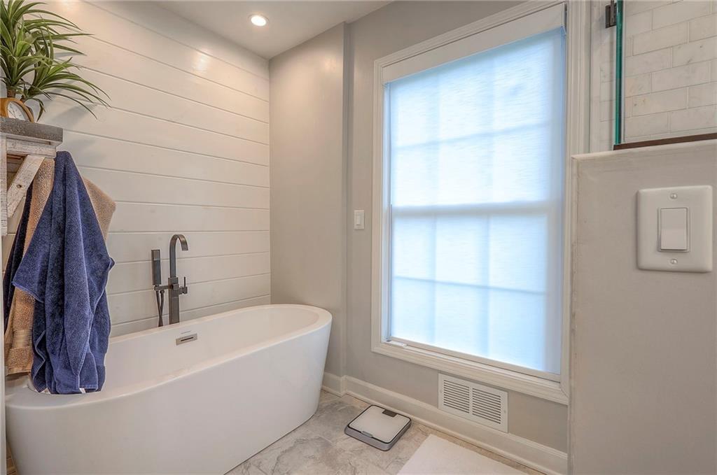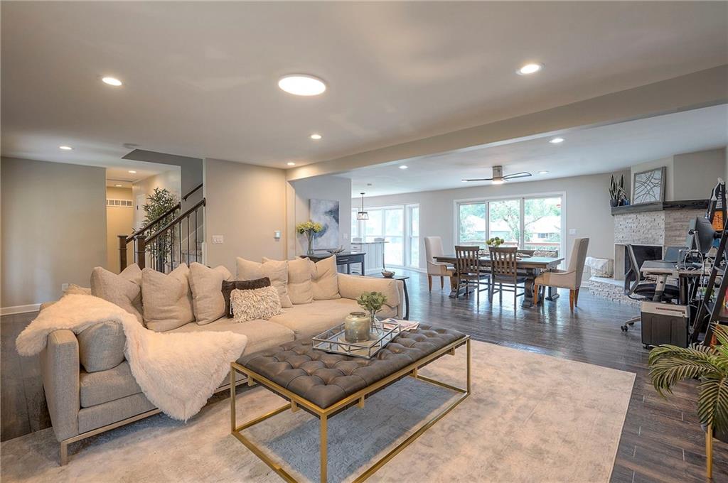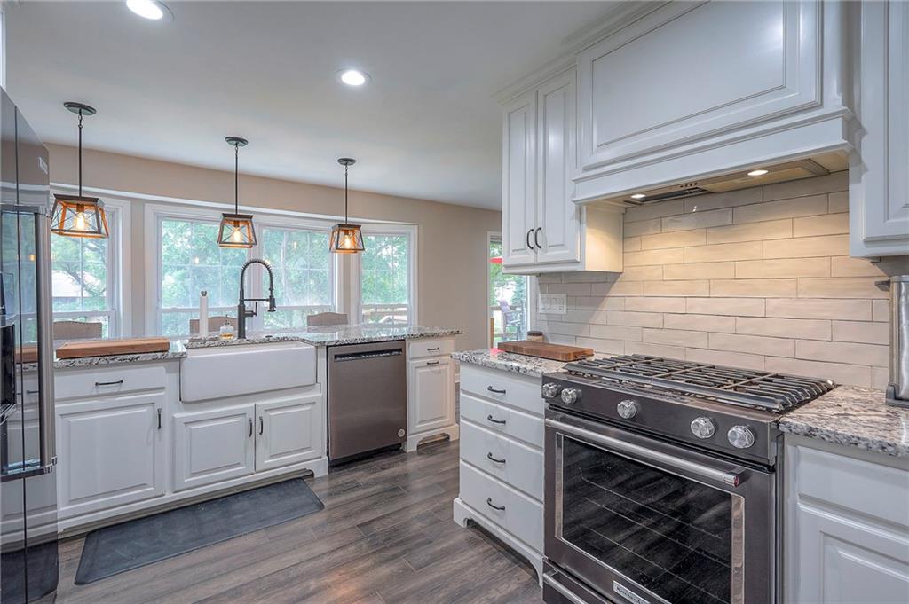 Tucked on nearly half an acre and just steps from the charming city park and tennis/pickleball courts, this beautifully remodeled lake front home blends timeless character with modern luxury. Inside, dark distressed engineered hardwoods flow seamlessly across the main level, guiding you through the open dining and living area to a cozy gas fireplace. Sliding glass doors open to a new Trex deck where you can soak in peaceful water views. The chef’s kitchen features custom cabinetry and premium granite countertops, thoughtfully matched throughout the home for a cohesive feel. A walk-in pantry provides space for all kitchen appliances, while the functional island offers convenient in-kitchen dining. The main-level primary suite offers tranquil water views, his-and-hers closets, and a new spa-like bath with a soaking tub and custom marble shower. Upstairs, two additional bedrooms—each with water views—share a well-appointed bathroom with a tub/shower combo. The finished walk-out lower level is perfect for relaxing or entertaining, with plush carpeting, a warm fireplace, and a wall-mounted TV ready for movie nights. Ample storage keeps everything organized, while the extra-wide garage offers room for vehicles, hobbies, and all your outdoor gear. Beyond the beautiful finishes, this home also offers peace of mind with significant improvements already completed, including foundation piers, a new HVAC system, new attic insulation, an extra-wide driveway, upgraded appliances that stay with the home, and a remodeled garage—making this property as solid as it is stunning.