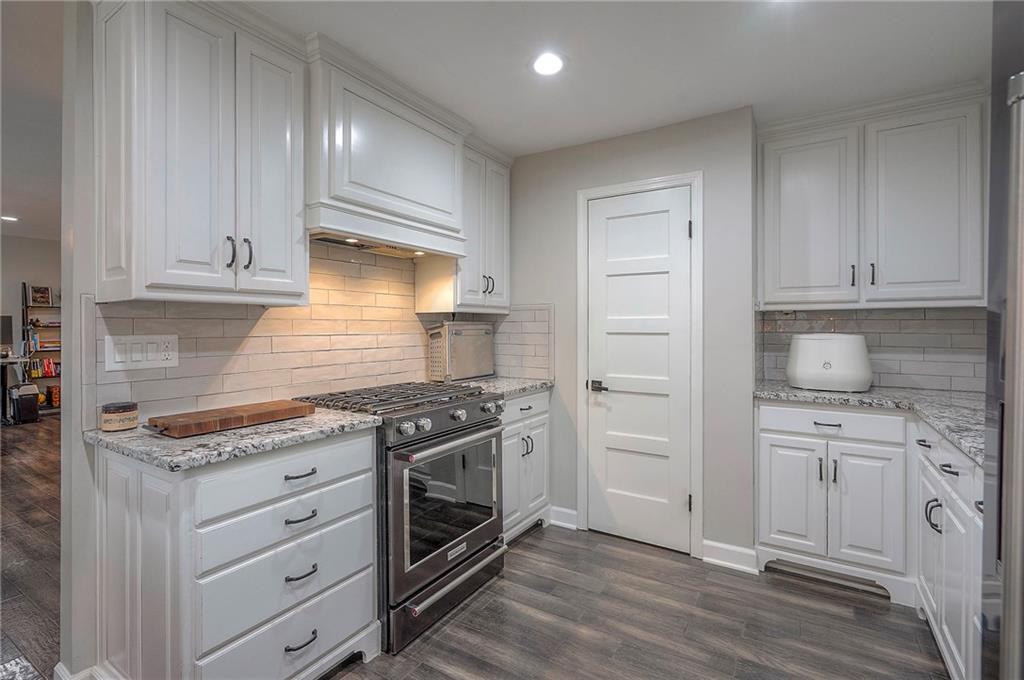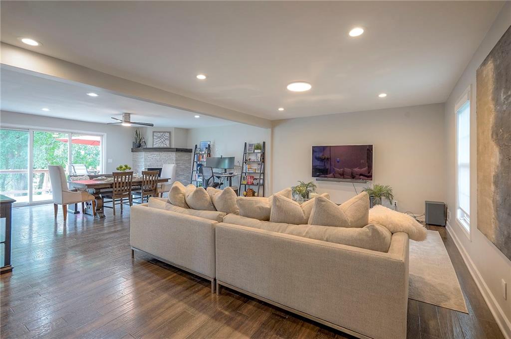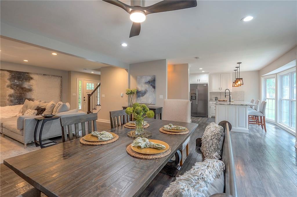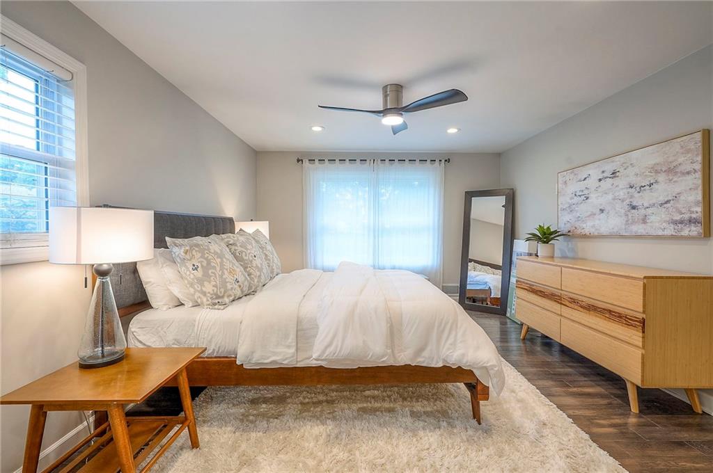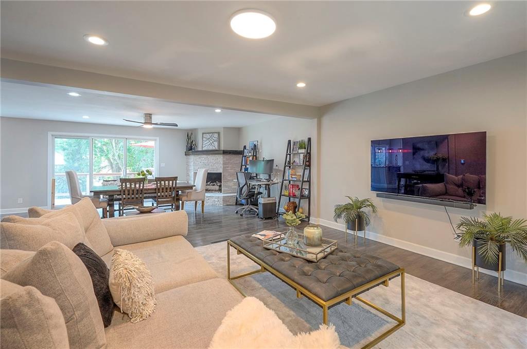 Tucked on nearly half an acre and just steps from the charming city park and tennis/pickleball courts, this beautifully remodeled lake front home blends timeless character with modern luxury. Inside, dark distressed engineered hardwoods flow seamlessly across the main level, guiding you through the open dining and living area to a cozy gas fireplace. Sliding glass doors open to a new Trex deck where you can soak in peaceful water views. The chef’s kitchen features custom cabinetry and premium granite countertops, thoughtfully matched throughout the home for a cohesive feel. A walk-in pantry provides space for all kitchen appliances, while the functional island offers convenient in-kitchen dining. The main-level primary suite offers tranquil water views, his-and-hers closets, and a new spa-like bath with a soaking tub and custom marble shower. Upstairs, two additional bedrooms—each with water views—share a well-appointed bathroom with a tub/shower combo. The finished walk-out lower level is perfect for relaxing or entertaining, with plush carpeting, a warm fireplace, and a wall-mounted TV ready for movie nights. Ample storage keeps everything organized, while the extra-wide garage offers room for vehicles, hobbies, and all your outdoor gear. Beyond the beautiful finishes, this home also offers peace of mind with significant improvements already completed, including foundation piers, a new HVAC system, new attic insulation, an extra-wide driveway, upgraded appliances that stay with the home, and a remodeled garage—making this property as solid as it is stunning.