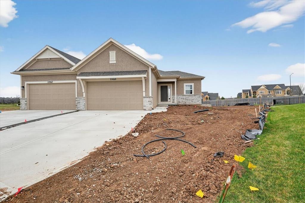 EXCLUSIVELY FOR THIS HOME: UP TO $22,000 IN TOTAL INCENTIVES! Secure up to $12,000 in Builder Incentives + $10,000 in Preferred Lender Credits to lower your monthly mortgage! This offer applies ONLY to this specific property. Move right into the Newberry reverse 1.5-story by Lambie Homes in Lenexa's Mize Hill. This maintenance-provided gem features a gourmet kitchen with a gas stove, a show-stopping white sawtooth ledge fireplace, and a primary suite designed for effortless main-level living. The finished daylight lower level is perfect for all lifestyles that include two bedrooms and a full bathroom. Enjoy the ultimate lock-and-leave lifestyle just steps from Mize Lake and Cedar Station Park.