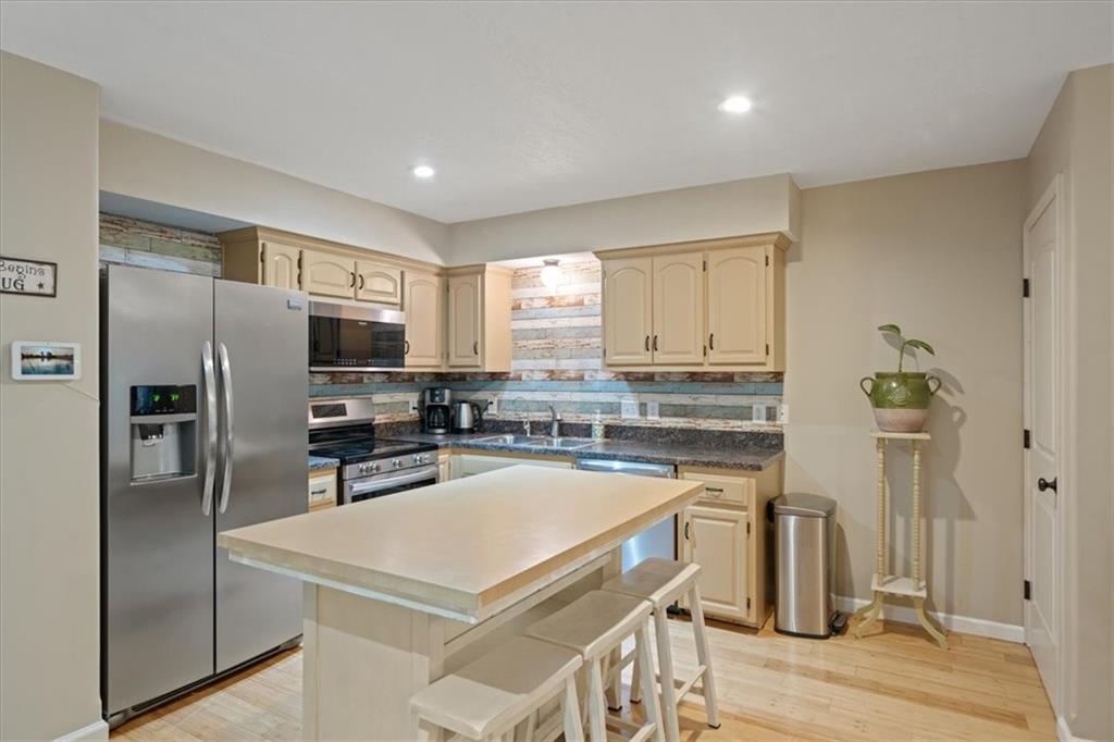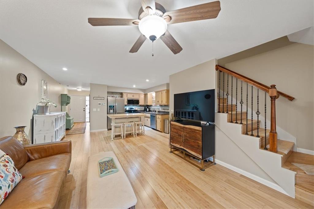 Enjoy the best of both privacy and proximity in this spacious townhome just minutes from the heart of North Kansas City. Step inside to discover warm bamboo floors flowing throughout the main living areas, creating a stylish and durable foundation for everyday living. The open-concept layout seamlessly connects the living room and kitchen, making it perfect for entertaining or relaxing at home. The kitchen features ample cabinetry and generous counter space, and a half bathroom adds to the convenience of the main floor. Upstairs, you’ll find two bedrooms, both with en-suite bathrooms, including a spacious primary suite with excellent closet storage. Each bedroom offers comfortable proportions rarely found at this price point. The unfinished walkout basement provides incredible potential—ready for your finishing touches to create additional living space, a home gym, workshop, or recreation area. It’s even subbed for a bathroom! Step outside to enjoy both a deck and patio, offering multiple outdoor living spaces to relax or entertain. The backyard backs to trees, providing a peaceful, private setting and a beautiful natural backdrop. A low annual HOA takes care of lawn maintenance, giving you more time to enjoy the home and its surroundings without the hassle of exterior upkeep. Located just minutes from the shops and restaurants along Armour Road in North Kansas City and less than 15 minutes to downtown Kansas City, this home offers convenience without sacrificing tranquility. With enviable highway access, commuting anywhere in the metro is quick and easy. Situated in the highly regarded North Kansas City School District, this home truly checks all the boxes—space, location, and opportunity. Don’t miss your chance to make it yours!