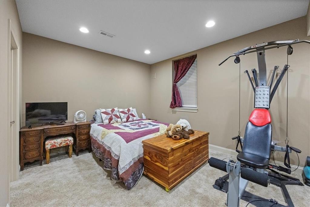 Beautiful, spacious reverse 1.5-story ranch on a premium corner lot in Nottington Creek! This well-maintained home features an open floor plan ideal for entertaining. Warm and welcoming ,the main level features a home office/bedroom just off the entry, large living area with fireplace, and a generous kitchen with ample dining space. The kitchen features upgraded cabinetry, granite counters, and pull-outs in the double pantry. This level also features a secondary bedroom, full bathroom, and the primary suite. The primary includes an en suite with separate jetted tub and shower, dual vanities with upgraded cabinetry and granite counters, and a walk-in closet. The lower level is sure to wow with a ton of space! An expansive rec space gives you plenty of options with a kitchenette/bar and built-ins surrounding a second fireplace. You’ll also find another bedroom and full bathroom on this level along with the 27x11 storage room. This home features new carpet with premium padding on the main floor, ceiling fans throughout, a fully fenced backyard, beautiful new landscaping, an in-ground sprinkler system and spacious deck. This lovely neighborhood features a community pool and the trail system.