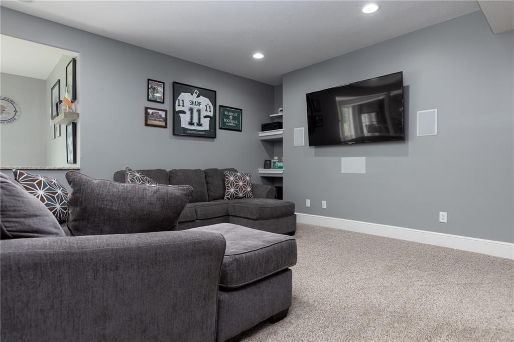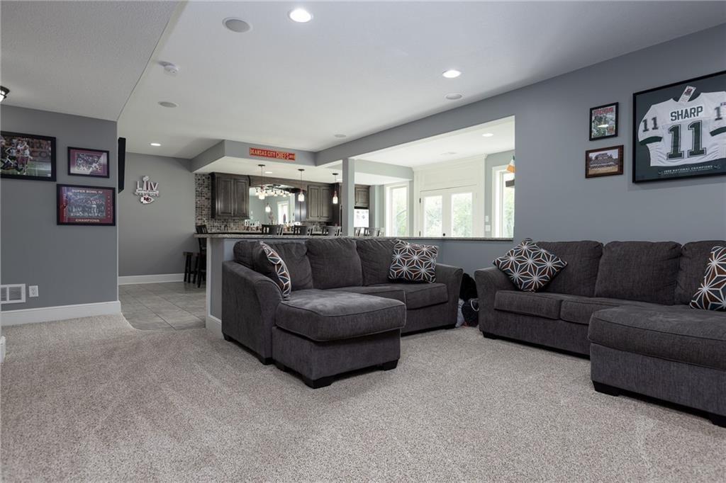 OPEN HOUSE CANCELLED FOR 3/1 DUE TO ILLNESS SELLER IS OFFERING $15,000 in seller paid closing costs!!! Welcome to 13017 Kelli Dr in the Oakbrook subdivision of Kearney. This 5-bedroom, 3.5-bath home sits on 1.25 acres in a cul-de-sac and backs to HOA green space, offering both privacy and room to spread out. The main level features an open layout with hardwood floors, a gas fireplace, and a spacious kitchen with a large island, custom cabinetry, new backsplash and a walk-in pantry with convenient garage access. Upstairs, the primary suite includes a walk-in closet, jetted tub, and separate shower. Additional bedrooms are generously sized. The finished walk-out basement adds flexible living space with a wet bar, full bath, and extra bedroom—ideal for guests or entertaining. Enjoy outdoor living with two decks, including a covered area with ceiling fans, plus a large yard and fire pit. Located in the Kearney School District with easy access to local amenities and highways. Agent/Owner