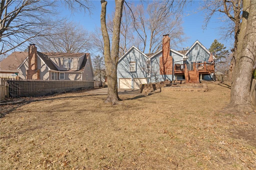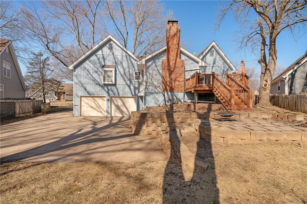 Fantastic Raised Ranch in the highly sought-after Indian Creek Estates and award-winning Blue Valley School District! This 3 bedroom, 3 full bath home features an oversized garage with abundant storage space and room for a workshop or hobbies. The garage is a 2-car tandem and could possibly fit up to 4 cars. The finished lower level offers direct access from the driveway or garage, creating flexible living options ideal for guests, extended family, or multi-generational living. Step inside to an inviting open, vaulted living room with a cozy fireplace—perfect for relaxing evenings at home. A second fireplace in the finished basement adds warmth and charm to the additional living space. Recent updates include: New siding installed 2024, new gutters and high end leaf guards 2024, sewer line repaired in 2024, flue caps and flashing around chimney replaced 2022, 2 year old tankless water heater. This lot backs to lots of green space. Conveniently located with quick access to highways, shopping, dining, and more. Schedule your showing today!