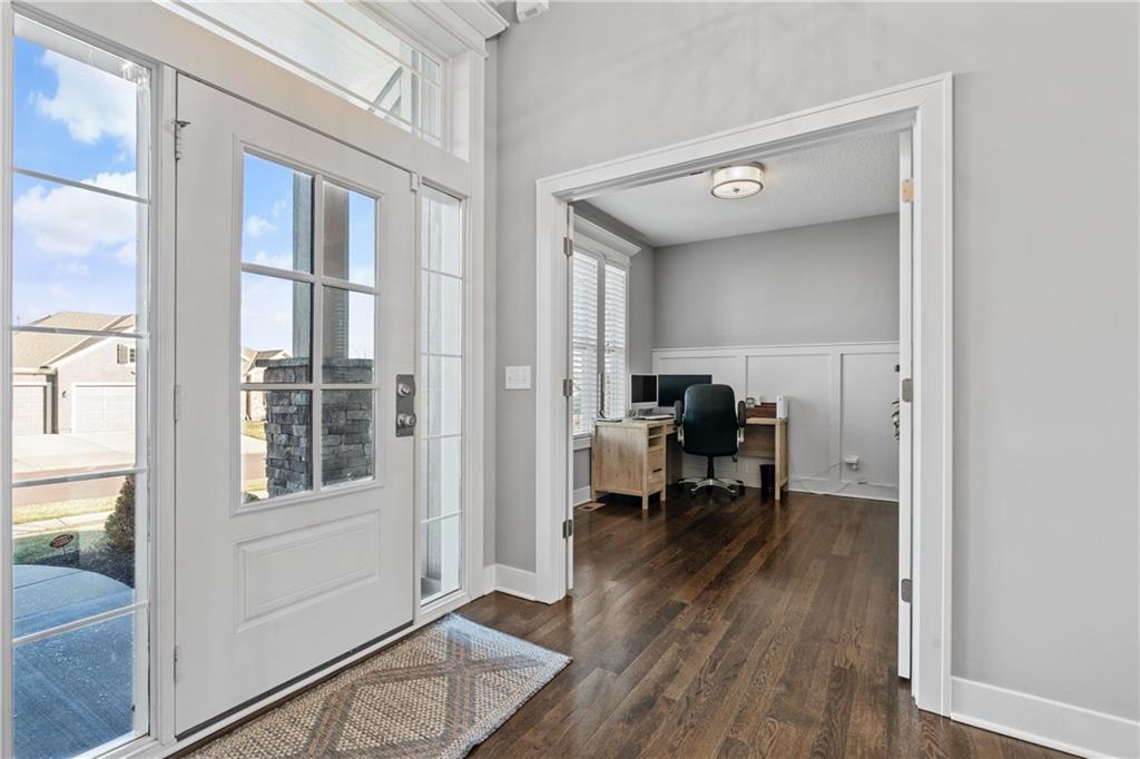 This beautiful, like-new 1.5 story home in Chapel Hill blends thoughtful design with everyday comfort. Gleaming hardwood floors span most of the main level and lead into a stunning living room with a stone fireplace. The kitchen offers stained cabinetry, a breakfast bar, and a walk-in pantry. The spacious primary suite features a wood tray ceiling and a beautiful ensuite with a large walk-in closet that connects directly to the laundry room. A dedicated main level office provides the perfect work-from-home space. Upstairs are three spacious bedrooms, a hall bath and one bedroom with a private ensuite bath. The huge unfinished basement has much progress completed toward finishing, offering great potential for additional living space or could be used for additional storage. Enjoy the covered patio overlooking the large, fenced backyard with direct access to a walking trail. Located near a large park and in an award winning school district, this home offers an ideal combination of layout, light, and location.