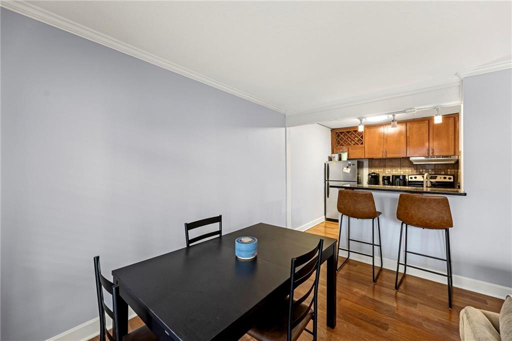 Welcome to Plaza Hills—where location and lifestyle meet in the heart of Kansas City. This light-filled condo offers two spacious bedrooms, two full bathrooms, and one of the largest floor plans in the community. Located in a secure, gated complex just one block from the Country Club Plaza, this upper-level unit features an open-concept layout ideal for everyday living and entertaining. The updated kitchen showcases ceiling-height cabinetry for exceptional storage including a wine rack, granite countertops, stainless steel appliances, and a classic subway tile backsplash. Luxury vinyl plank and hardwood flooring, fresh interior paint, and updated fixtures create a bright, modern feel throughout. All appliances, including the in-unit washer and dryer, stay with the home. French doors open to a private covered deck overlooking the pool—perfect for morning coffee or relaxing evenings. A reserved parking space directly behind the building adds everyday convenience. Residents enjoy premium amenities including a fitness center, secured package delivery, and a beautiful community pool. Ideally positioned between the Country Club Plaza and Westport, and minutes from the Nelson-Atkins Museum of Art, this condo offers unbeatable access to Kansas City’s best dining, shopping, and entertainment.