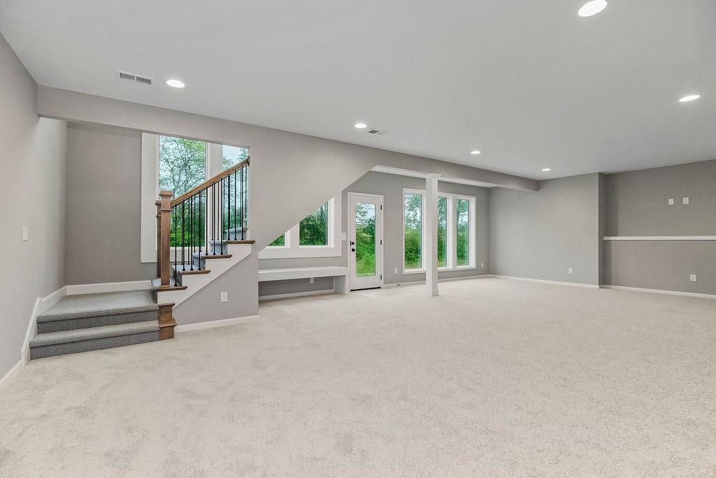 The Tatum Reverse by New Mark Homes Kc sits on lot 7 in Southern Meadows. Stunning reverse plan on a quiet cul-de-sac lot! This home is a true showstopper from the moment you arrive, welcoming you with its charming front porch and beautiful curb appeal. The thoughtfully designed layout offers exceptional privacy, with the primary suite located on the opposite side of the home from the secondary bedroom. The great room and kitchen are filled with natural light, creating a warm and inviting atmosphere. The spacious kitchen features a large center island, perfect for entertaining or everyday living. Step outside to the oversized covered deck — the perfect setting for hosting a girls’ night or enjoying a relaxing evening outdoors. The finished lower level is designed for fun and functionality, offering two additional bedrooms and a generous recreation room ideal for football watch parties, complete with a convenient back bar for easy entertaining. Home is currently at Mechanical stage and approximately 120 days out.