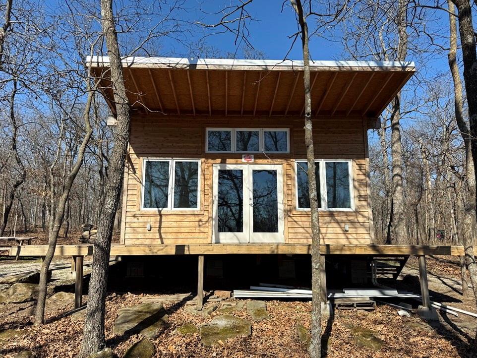 Complete Recreational Package: Land, Cabins, River, Trails, Hunting, Fishing. For sale just 3 miles west of El Dorado Springs, MO in Vernon County, is this 135-acre tract of the most prime recreational property around. This farm boasts 1.2 miles of Clear Creek frontage, scattered food plot fields on the south, timbered ridges on the north, and lush creek bottoms with a wetland slough that can be improved for duck hunting. The ~3-mile trail system on this property is fantastic with quick and easy access for ATV, UTV, and trucks. There are 2 cabins on the property. The first cabin is set at the main gate and is a 16’x24’, single room cabin with a kitchen, bathroom, and sleeping area. The cabin also has an outdoor shower, 14’x16’ covered deck, circle drive, firepit area, and 15’x20’ storage building with a 14’x20’ attached lean-to. The property is improved with rural (public) water, electric, small septic, and fiber internet (available). The second cabin is completely off-grid, sits on the northwest corner of the property, and is primitive in nature. The setting is on a bluff above Clear Creek surrounded by hardwood trees. This cabin is 16’x20’ with a large deck and firepit area. It showcases 1 large room with a kitchenette area, living room, wood stove, bathroom, and large-window views. A small solar system provides the electrical needs, and water can be hauled in for use. If you want a secluded cabin with an adventure, this is the place! Recreational properties with this location and improvements are rare to find, so call today to set up your private tour!