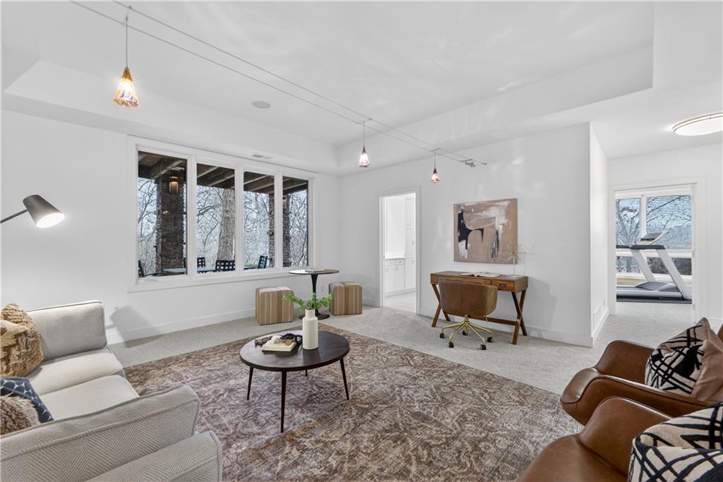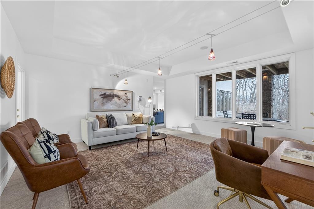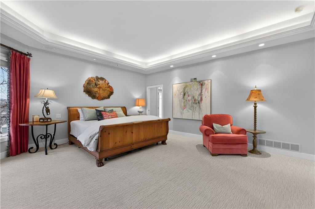Welcome to 11615 Mohawk Lane in the prestigious Hazelwood subdivision—one of the most private and distinguished neighborhoods in Leawood. Tucked away on a breathtaking 1.5-acre treed lot, this remarkable Reverse 1.5 Story estate offers an extraordinary blend of luxury, privacy, and architectural presence in a serene, estate-like setting. From the moment you arrive, the manicured landscaping, stone columns, and gas lanterns create a grand first impression. Inside, soaring ceilings, travertine flooring, expansive windows, and multiple fireplaces provide warmth and elegance throughout the thoughtfully designed floor plan. The home offers a seamless balance of formal and casual living spaces, ideal for both intimate gatherings and large-scale entertainment. The gourmet kitchen with walk in pantry flows effortlessly into the hearth room and out to a private deck, all overlooking the peaceful, wooded backyard. The main-level primary suite serves as a true retreat, featuring vaulted ceilings, a spa-inspired bath, and 2 generous walk-in closets. A light-filled sunroom and dedicated office add both charm and functionality to the main floor. The walk-out lower level expands the living space with a second kitchen/bar area including high impact wine cellar, recreation spaces, additional bedrooms, and flexible rooms perfect for a gym, study, or guest quarters—all with direct access to the covered patio and beautifully landscaped backyard complete with a firepit. Residents enjoy upscale shopping and dining at Town Center Plaza, Park Place, and Prairie fire, as well as convenient highway access and nearby parks and trails. Located within the highly acclaimed Blue Valley School District, this home offers both prestige and practicality. This is a rare opportunity to experience refined living on one of Leawood’s most coveted estate lots—where privacy, craftsmanship, and location come together beautifully.