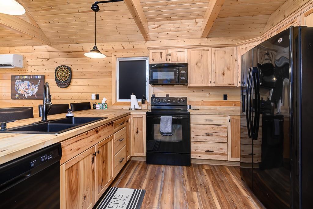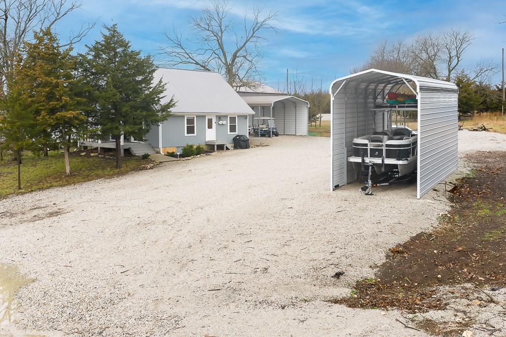BEAUTIFUL 2-BED 1-BATH LAKE HOME ON DOUBLE LOT WITH BIG GARAGE FOR YOUR BOAT OR RV! This move-in ready getaway comes fully furnished and includes all appliances, so you can start enjoying the lake right away. Inside, you’ll love the hardwood floors and rustic wood walls, ceilings, and beams in the vaulted spaces, plus a cozy open living area with a loft bedroom that looks out over the main room. The covered front porch is a great spot to relax after a day on the water. Outside, there’s a 16x28 carport and a 28x40 metal garage that’s perfect for storing your boat, RV, or lake toys. The gated community offers 2 pools, putt-putt course and golf course and clubhouse. Plus it is a pivate lake, no registration for fishing or boating! The home sits on a double lot with second-tier lake access and is just a short walk to the water, giving you the lake lifestyle without the lakefront price. This is an easy, low-stress lake place ready for weekend fun or full-time living.