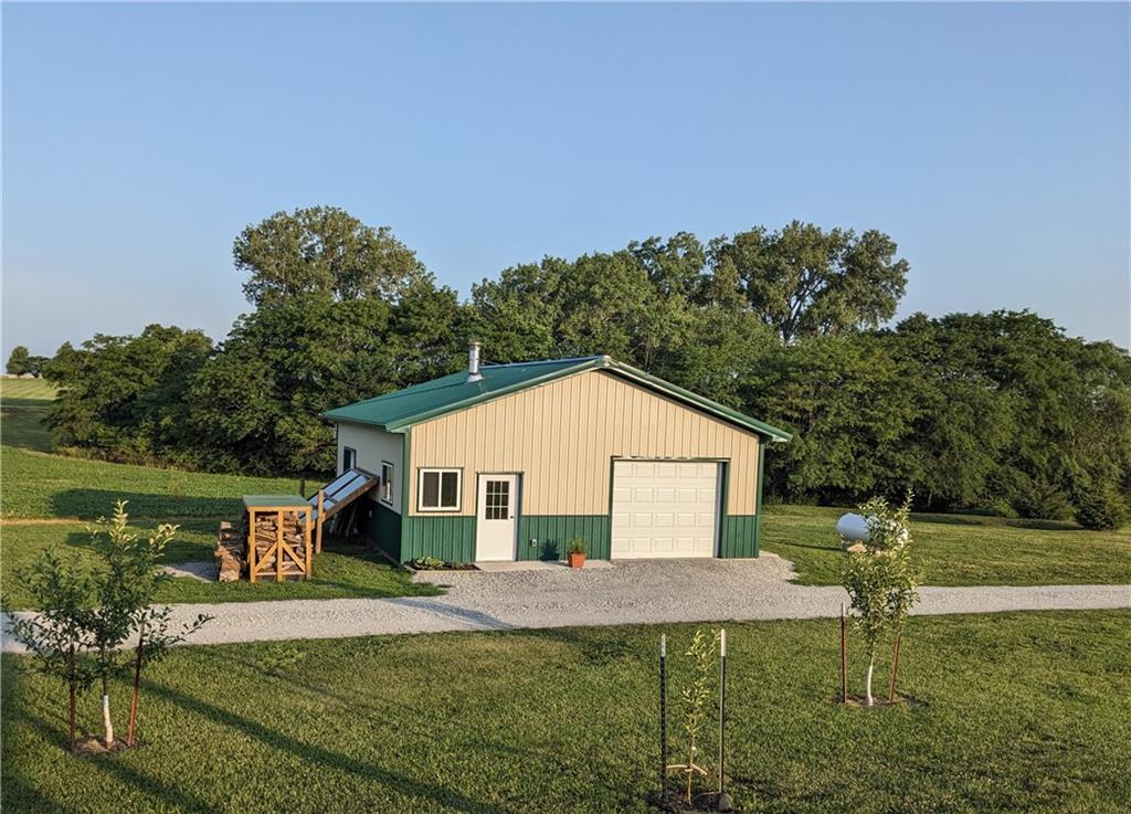 Spacious multigenerational ranch home with over 4,400 sq ft of finished living space on nearly 11 acres with wooded area. Primary home: Huge master bedroom with walk-in closet, guest bedroom and office (can be used as a 3rd bedroom), 1 3/4 bathrooms, sunroom, propane range and fireplace, with supplemental solar power, 2-car garage. All-metal post frame construction with 9-inch exterior walls set on concrete piers. Secondary home: 5 large bedrooms and 1 3/4 bathrooms, family room, dining room and kitchen, one-car garage. 978 sq. ft. machine shop with clean off-grid water supply, solar with supplemental grid electric and heat (wood stove and propane heater), one-car garage space with separate garage access for lawn mower. Art room with Murphy bed and ¾ bath. Additional features: Built in bookcases; Home gym with Vectra On-Line 1800 Strength Training Gym and other work-out equipment; Above ground storm shelter; 8’ wide covered porch runs the length of primary home; 8’ wide north-facing (shaded) porch secondary home; RV pad with power and dump station; Primary home has off-grid supplemental Solar power; Back patios; Landscaping (grass, fruit trees, flower and garden beds); Grape arbors; Chicken coop with large run; 12’ x 16’ Tool shed; Both homes handicap accessible; Blacktop frontage with current access off Wamsley Road (gravel); Fire pit and trails in the woods.