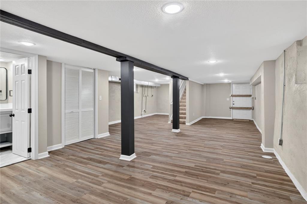 Completely rebuilt from the inside out, this fully renovated home delivers modern finishes and brand-new major systems for true peace of mind. This is not a cosmetic update — the HVAC, roof, windows, electrical, and plumbing are all brand new. The big-ticket items have been done. The main level features new luxury flooring, fresh neutral paint, and a bright open layout. The kitchen is fully updated with white shaker cabinets, sleek black hardware, stainless steel appliances, subway tile backsplash, and modern lighting. One bedroom includes its own private half bath — a rare and convenient feature. The beautifully finished basement adds valuable living space with a closet plus a full bathroom, making it perfect for an en suite bedroo, second living area, guest suite, office, or flex space. Outside, enjoy a fully fenced yard, off-street parking, and private rear access. With brand-new systems, designer finishes, and a finished lower level, this home offers style, function, and long-term value — all in one package.