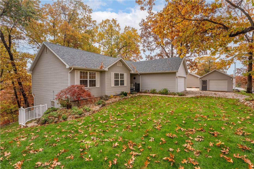 Welcome to 662 Grandview Lane in Linn Creek — a beautifully updated retreat in the heart of Lake of the Ozarks! Nestled on approximately 3 acres, this stunning 5-bedroom, 3 full bath home offers the perfect blend of seclusion, space, and lake-area convenience. Step inside to soaring ceilings, oversized windows, gorgeous lighting, a built-in sound system, and rich hardwood floors that create a warm yet elevated feel throughout. The living room features a cozy gas fireplace and flows seamlessly into the show-stopping kitchen complete with quartz countertops, quality cabinetry, and thoughtful design details that make everyday living and entertaining effortless. The full finished basement expands your living space with room for guests, recreation, or multi-generational living. Enjoy peaceful mornings or relaxing evenings in the sun porch or on the covered deck overlooking the beautifully landscaped grounds. Outdoors, you’ll find meticulous attention to detail — an irrigation system, raised garden beds, lush landscaping, and a custom firepit perfect for gathering with friends and family. A short distance away, enjoy access to the community dock with your own slip, making lake days simple and convenient. Car enthusiasts and hobbyists will appreciate both the attached and detached garages, plus a dedicated RV parking spot for all your lake toys. This property truly checks every box — location, space, updates, and lifestyle. Don’t miss your opportunity to own a slice of paradise at Lake of the Ozarks!