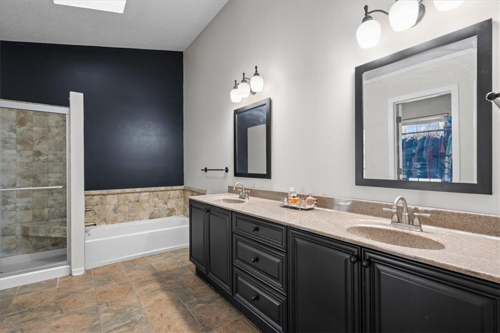 Beautiful, sun-filled two-story home in sought-after Sylvan Lake, featuring numerous updates and a large, private fenced backyard complete with a firepit and ambient lighting around the entire perimeter. This spacious home offers 4 bedrooms and 2.5 baths, including a formal dining room, a main-level office or sitting room, and a generous family room with a fireplace that opens to the updated kitchen. The kitchen boasts granite countertops, gas cooking, a walk-in pantry, and direct access to the outdoor deck—perfect for entertaining. Upstairs, the primary suite features a walk-in closet, double vanities, a soaking tub, and a separate walk-in shower. Three large secondary bedrooms share a beautifully updated hall bath. The finished basement provides an additional oversized living area ideal for gatherings, movie nights, or play space. Additional highlights include new LVP flooring on the main level, new carpet on the stairs, landing, and bedrooms, landscape lighting along the backyard fence, a one-year-old HVAC system, newer windows and sprinkler system, and an indoor/outdoor stereo system. Conveniently located within walking distance to Blue Valley High School and Stanley Elementary and neighborhood lakes. Don’t miss the opportunity to make this exceptional home yours!