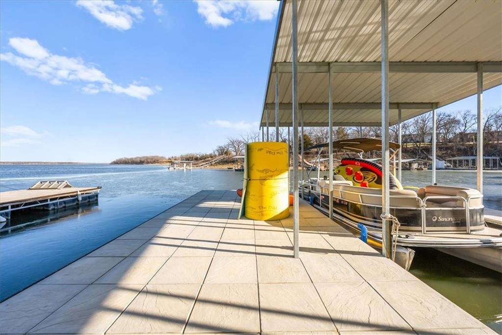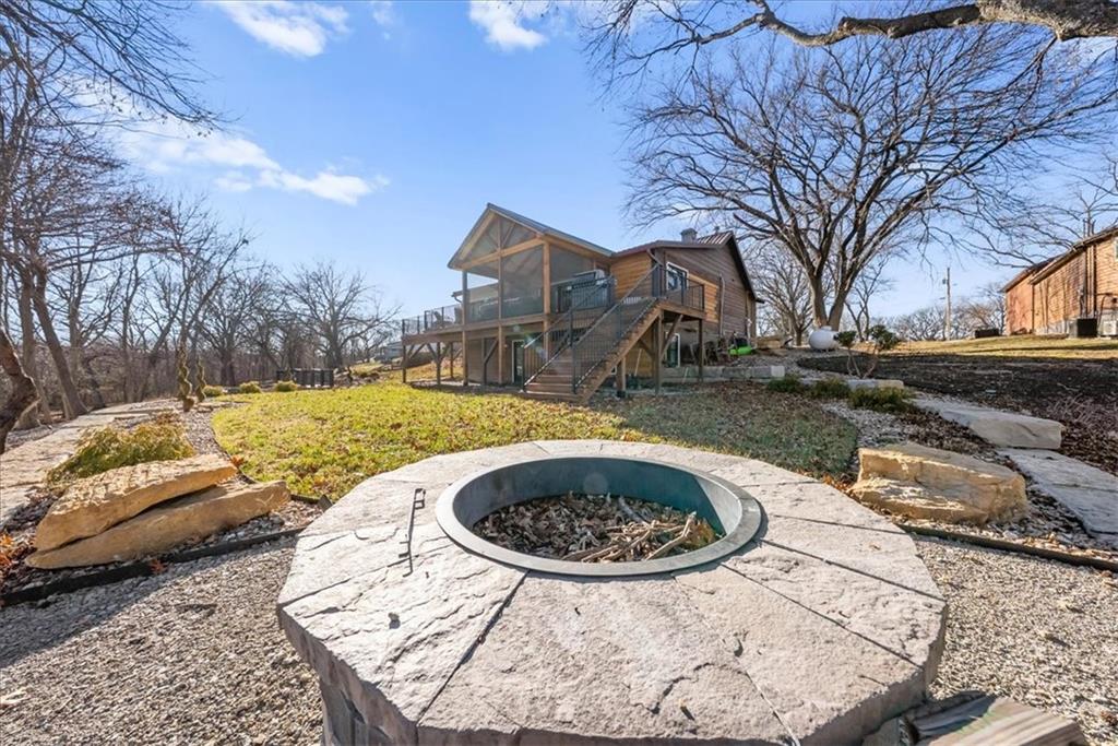 Welcome to your own slice of paradise at the lake! This stunning ranch-style lakefront home at Lake Pomona offers 5 bedrooms and 4 bathrooms, and has been meticulously updated and lovingly maintained. A marble-tiled entry welcomes you into an expansive eat-in kitchen featuring abundant prep space, extensive countertops, and a large center island with seating for four—perfect for gathering with family and friends. Just off the kitchen, a sitting room with louvered folding patio doors opens to a three-season room and onto a renovated deck overlooking the beautifully maintained grounds, complete with a putting green and tranquil pond. The formal dining room is conveniently located just steps away, making entertaining effortless. The main level includes a spacious primary en-suite retreat with a soaking tub, separate shower, and generous vanity. Two additional bedrooms and a full bath with double sinks and a walk-in shower complete the main floor. The finished lower level offers even more living space with a large family room, two additional bedrooms—one currently designed as a bunk room that sleeps eight—plus a full bath and laundry area. Step outside from the lower level to enjoy the fire pit and pathway leading directly to the double dock. Designed for making memories, this exceptional lakefront property is the perfect weekend escape for large families and year-round enjoyment.