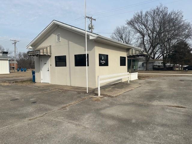 Lots of possibilities for this former drive up bank branch in a small rural community. Located on a nice size corner lot with great parking. The building is in good condition and would be perfect for a small office or just storage. It has a combination wall mounted heating/cooling unit, a half bath and a teller's window.