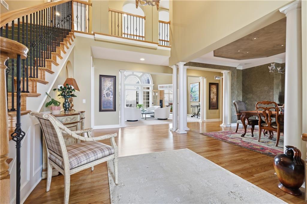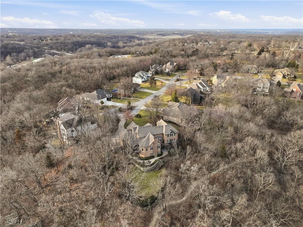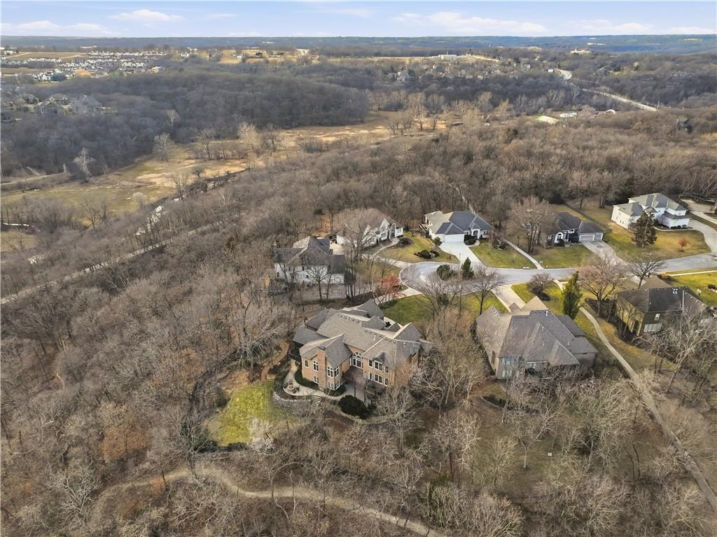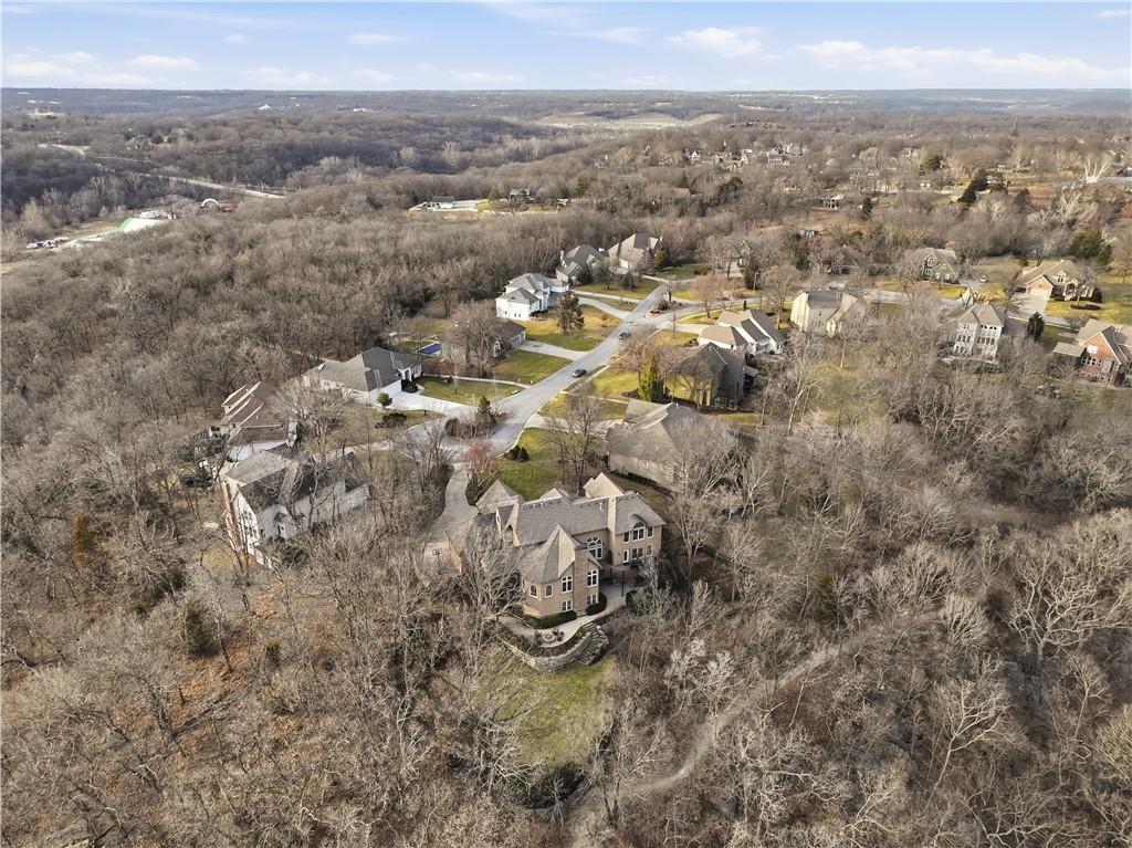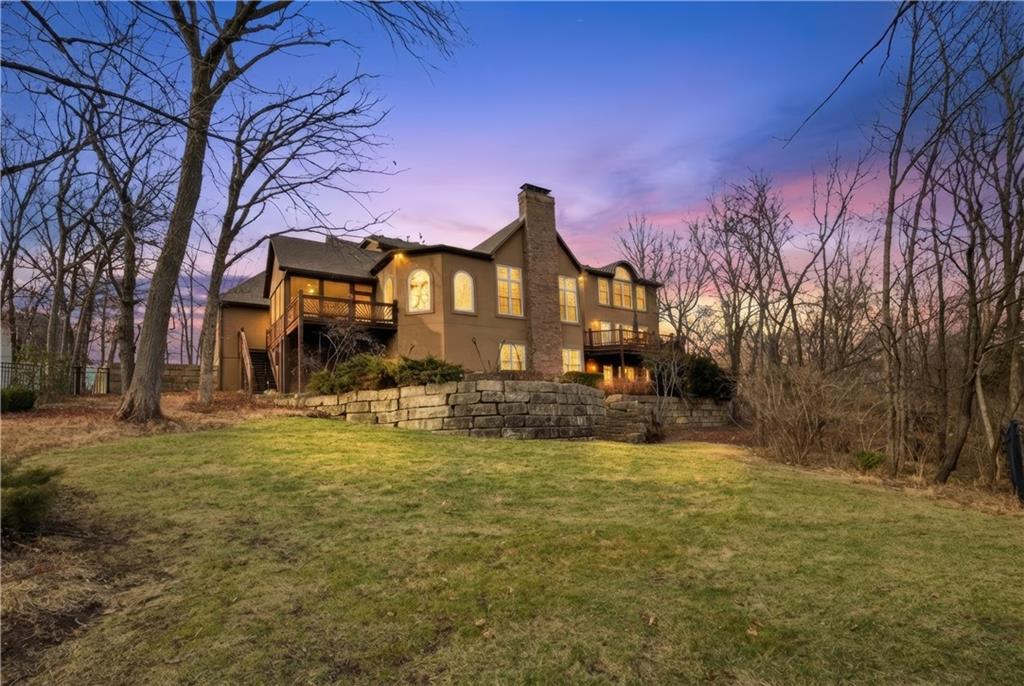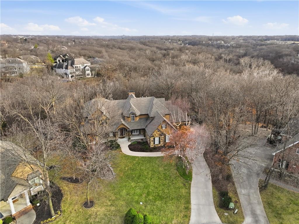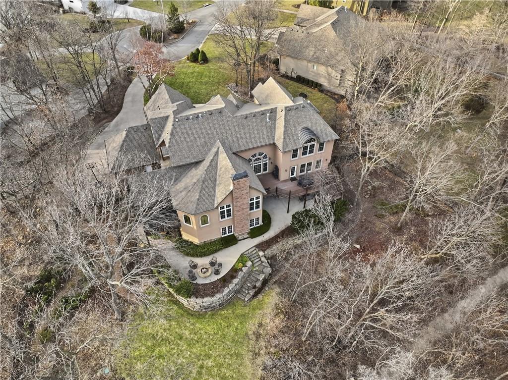 Stunning 8,355 SF estate at the end of a quiet cul-de-sac in highly sought-after Winterset Woods. Situated on a private .84-acre lot backing to maintained wooded green space and the community's 100 Acre Woods. This home offers exceptional privacy with direct trail access to the Rock Island Trail. Main level features newly refinished hardwood floors, formal dining and living rooms, a spacious family room, gorgeous sunroom, walk-in pantry, and private office with side entry front porch access. The updated kitchen showcases natural maple cabinetry, quartzite counters, new Wolf double ovens & Wolf induction range and new remaining appliances. This home offers two master suites. The main-floor master suite includes a spacious bath with Jacuzzi tub and private deck access. The 2nd level master suite has cathedral ceiling framing tree top views. Bath has heated tiled floor and a Jacuzzi River Bath. Closets feature California Closet design. The remaining 2nd level offers a loft and 2 suites with private baths, highlighted by Alder hardwood doors and Renewal by Andersen windows. The walkout lower level is built for entertaining with a large rec room, gas fireplace, full bar, billiards area, guest suite with full bath, second laundry, custom wine cellar (1,000+ bottle capacity), additional rec space, and nearly 1,400 SF of storage. A storm shelter/vault is located beneath the front porch. Outdoor living includes multiple decks, screened porch, covered patio with finished dry ceiling and shiplap detail, gas fire pit, ornamental iron fencing, and additional dry storage below the south deck. The 4-car garage (998 SF) provides ample space. Roof replaced in 2020 with copper detailing. Perfect location with easy proximity to I-470. Just minutes from Lowenstein Park, The Streets of West Pryor, and Summit Woods.