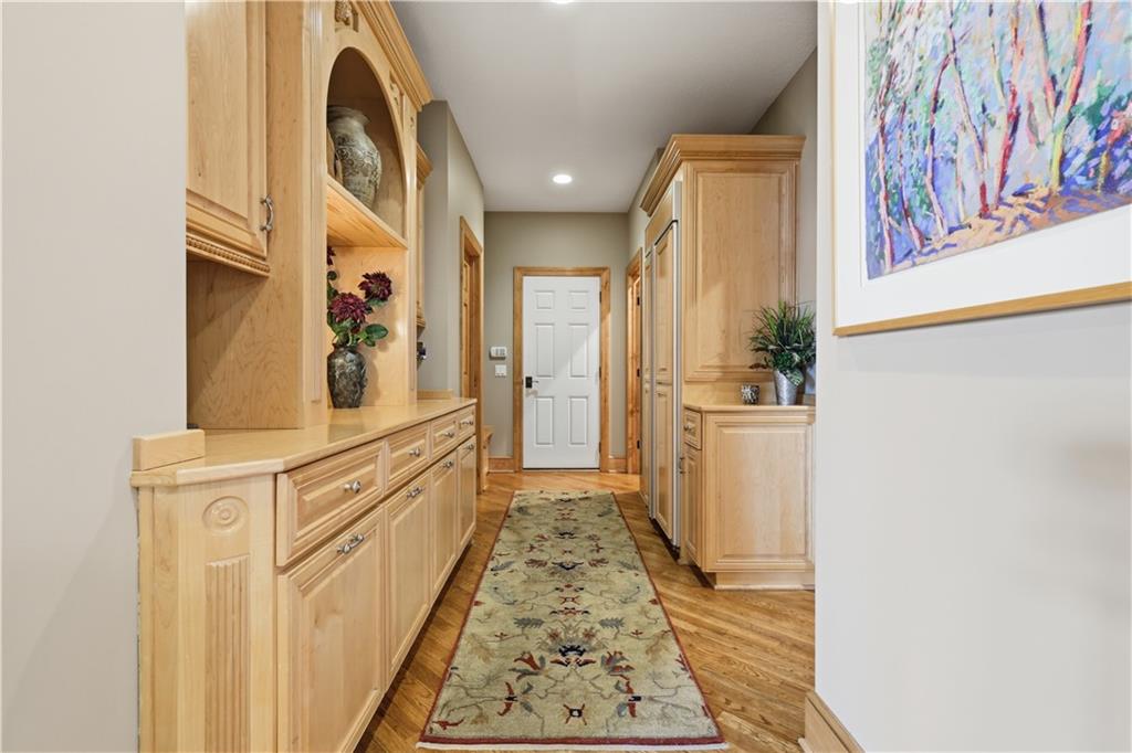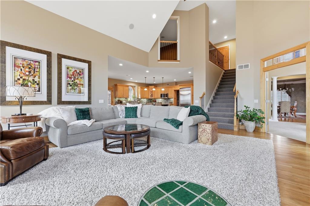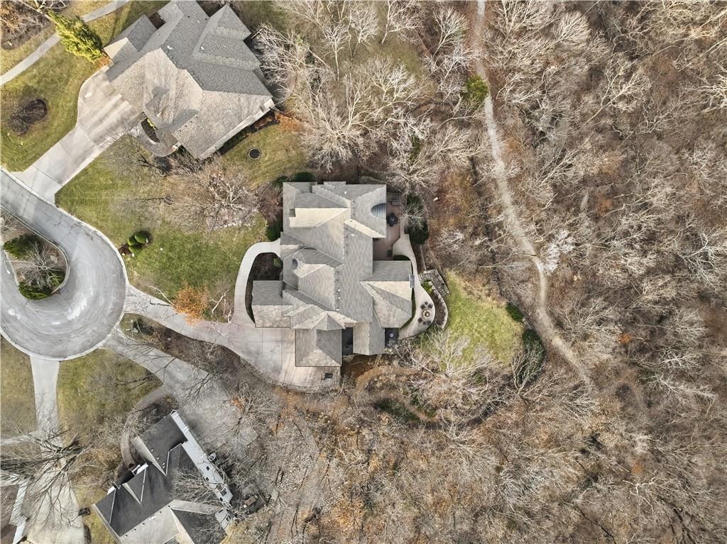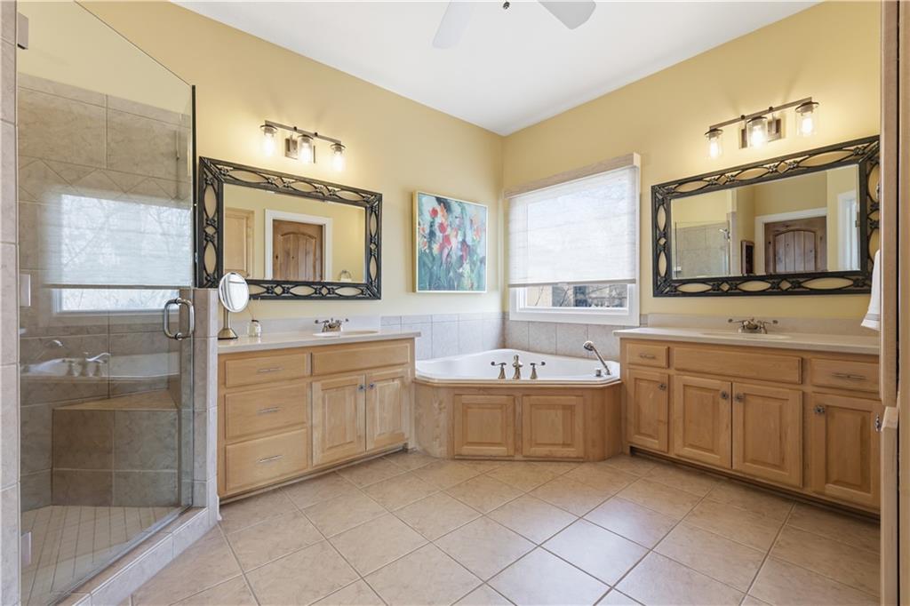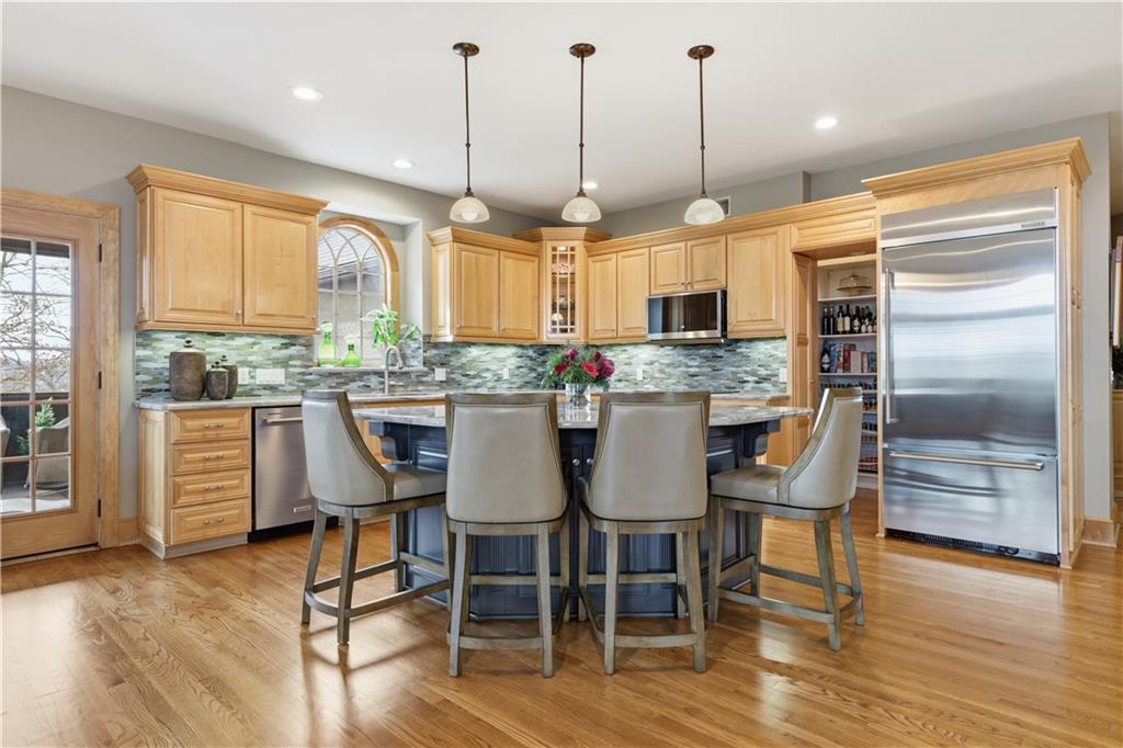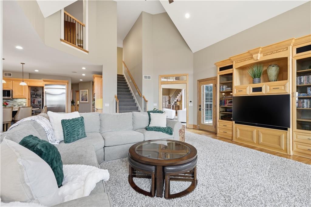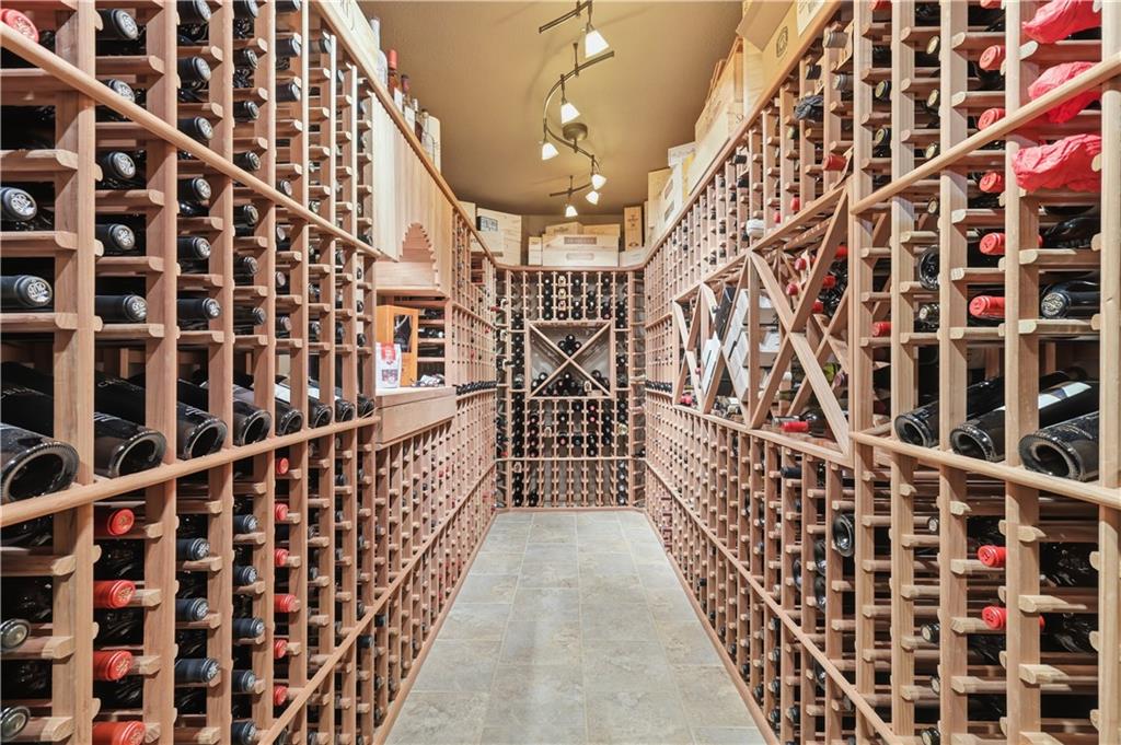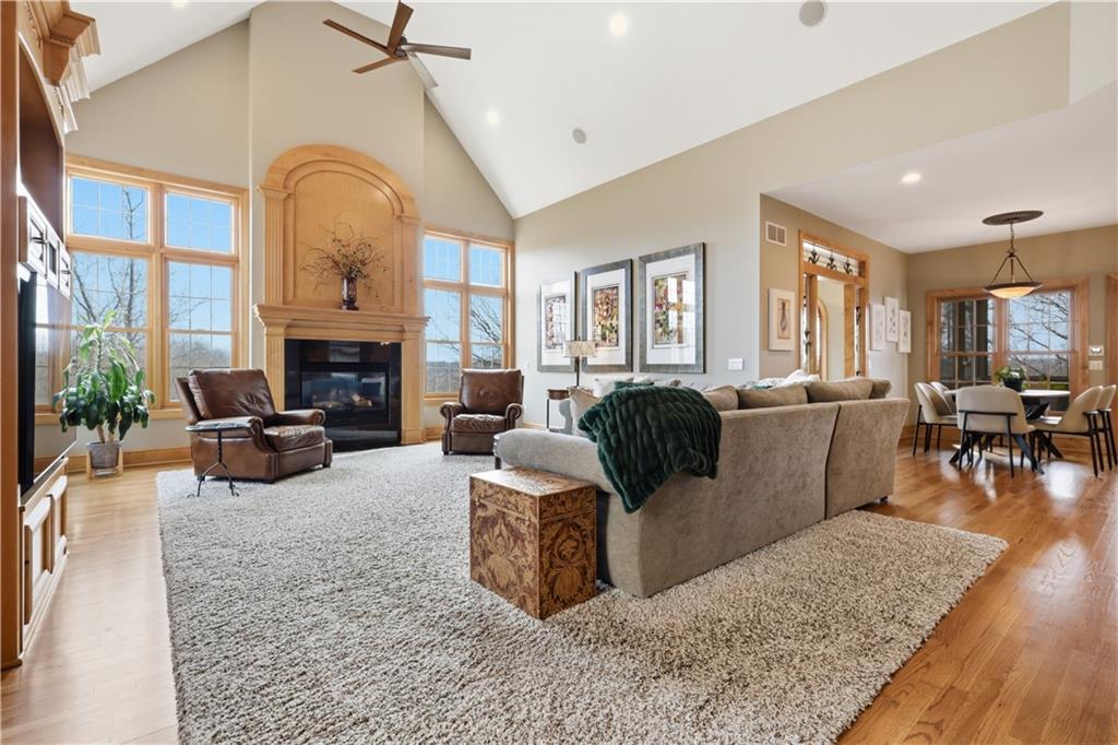 Stunning 8,355 SF estate at the end of a quiet cul-de-sac in highly sought-after Winterset Woods. Situated on a private .84-acre lot backing to maintained wooded green space and the community's 100 Acre Woods. This home offers exceptional privacy with direct trail access to the Rock Island Trail. Main level features newly refinished hardwood floors, formal dining and living rooms, a spacious family room, gorgeous sunroom, walk-in pantry, and private office with side entry front porch access. The updated kitchen showcases natural maple cabinetry, quartzite counters, new Wolf double ovens & Wolf induction range and new remaining appliances. This home offers two master suites. The main-floor master suite includes a spacious bath with Jacuzzi tub and private deck access. The 2nd level master suite has cathedral ceiling framing tree top views. Bath has heated tiled floor and a Jacuzzi River Bath. Closets feature California Closet design. The remaining 2nd level offers a loft and 2 suites with private baths, highlighted by Alder hardwood doors and Renewal by Andersen windows. The walkout lower level is built for entertaining with a large rec room, gas fireplace, full bar, billiards area, guest suite with full bath, second laundry, custom wine cellar (1,000+ bottle capacity), additional rec space, and nearly 1,400 SF of storage. A storm shelter/vault is located beneath the front porch. Outdoor living includes multiple decks, screened porch, covered patio with finished dry ceiling and shiplap detail, gas fire pit, ornamental iron fencing, and additional dry storage below the south deck. The 4-car garage (998 SF) provides ample space. Roof replaced in 2020 with copper detailing. Perfect location with easy proximity to I-470. Just minutes from Lowenstein Park, The Streets of West Pryor, and Summit Woods.