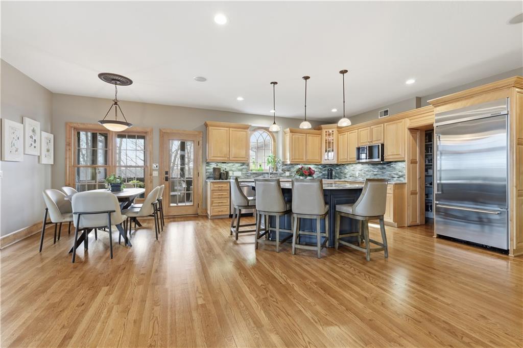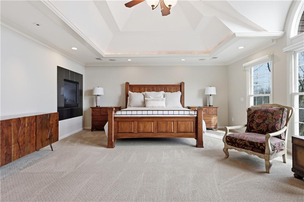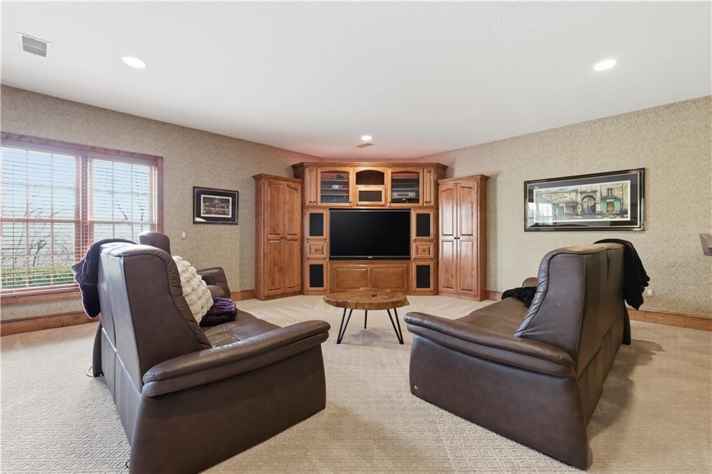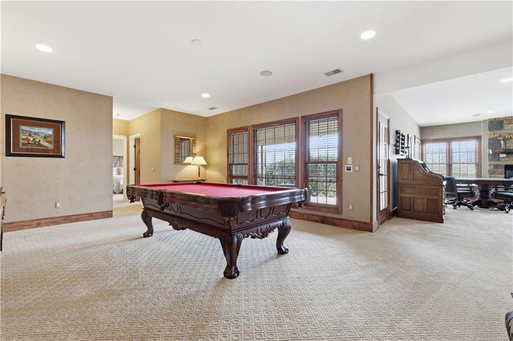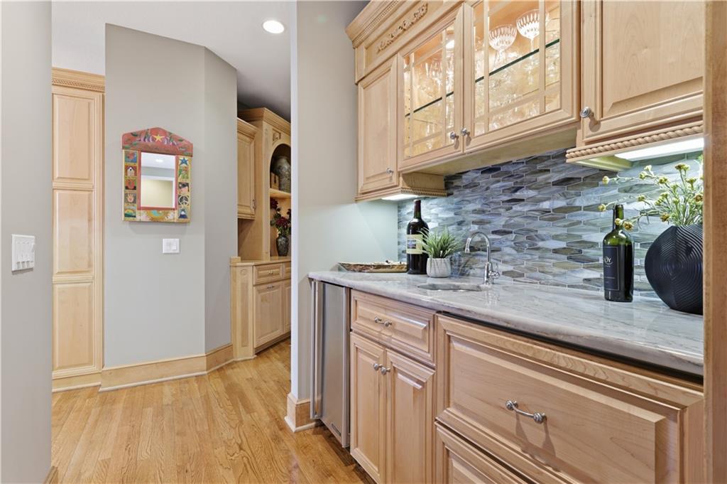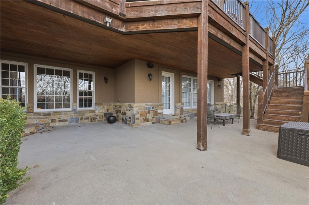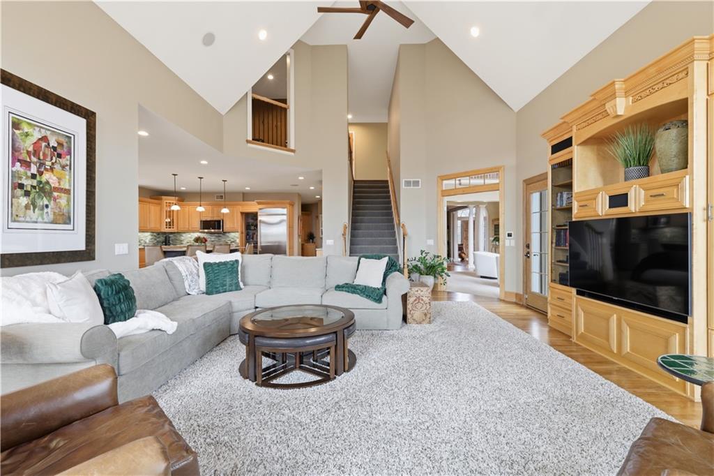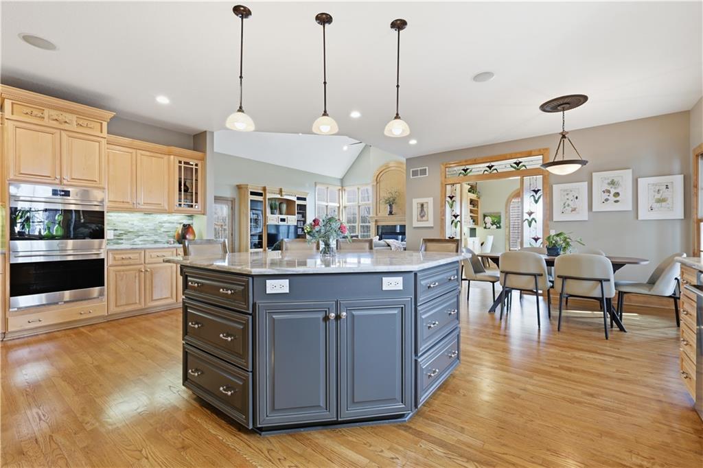Stunning 8,355 SF estate at the end of a quiet cul-de-sac in highly sought-after Winterset Woods. Situated on a private .84-acre lot backing to maintained wooded green space and the community's 100 Acre Woods. This home offers exceptional privacy with direct trail access to the Rock Island Trail. Main level features newly refinished hardwood floors, formal dining and living rooms, a spacious family room, gorgeous sunroom, walk-in pantry, and private office with side entry front porch access. The updated kitchen showcases natural maple cabinetry, quartzite counters, new Wolf double ovens & Wolf induction range and new remaining appliances. This home offers two master suites. The main-floor master suite includes a spacious bath with Jacuzzi tub and private deck access. The 2nd level master suite has cathedral ceiling framing tree top views. Bath has heated tiled floor and a Jacuzzi River Bath. Closets feature California Closet design. The remaining 2nd level offers a loft and 2 suites with private baths, highlighted by Alder hardwood doors and Renewal by Andersen windows. The walkout lower level is built for entertaining with a large rec room, gas fireplace, full bar, billiards area, guest suite with full bath, second laundry, custom wine cellar (1,000+ bottle capacity), additional rec space, and nearly 1,400 SF of storage. A storm shelter/vault is located beneath the front porch. Outdoor living includes multiple decks, screened porch, covered patio with finished dry ceiling and shiplap detail, gas fire pit, ornamental iron fencing, and additional dry storage below the south deck. The 4-car garage (998 SF) provides ample space. Roof replaced in 2020 with copper detailing. Perfect location with easy proximity to I-470. Just minutes from Lowenstein Park, The Streets of West Pryor, and Summit Woods.